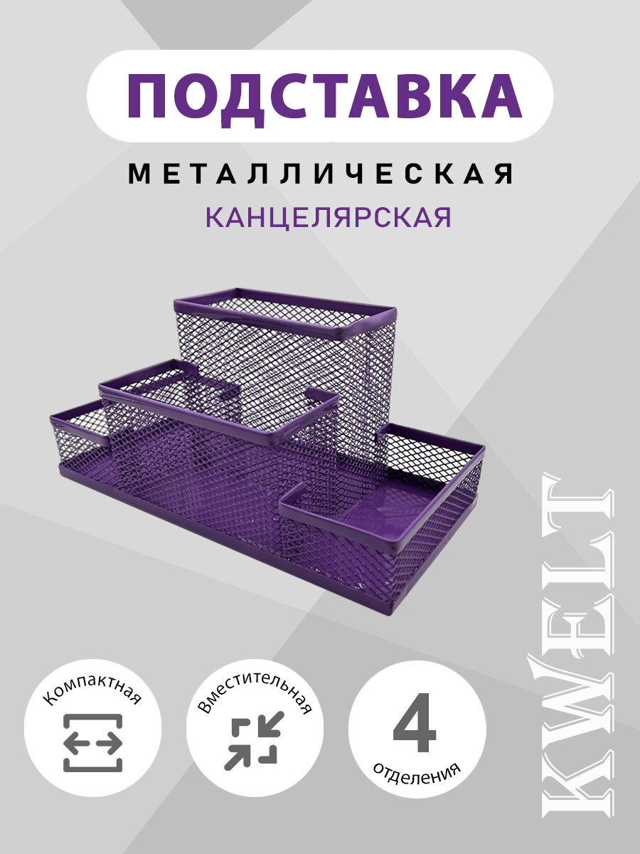 Купить Подставка " KWELT " 4 отделения, металлическая, сетчатая, фиолетовая