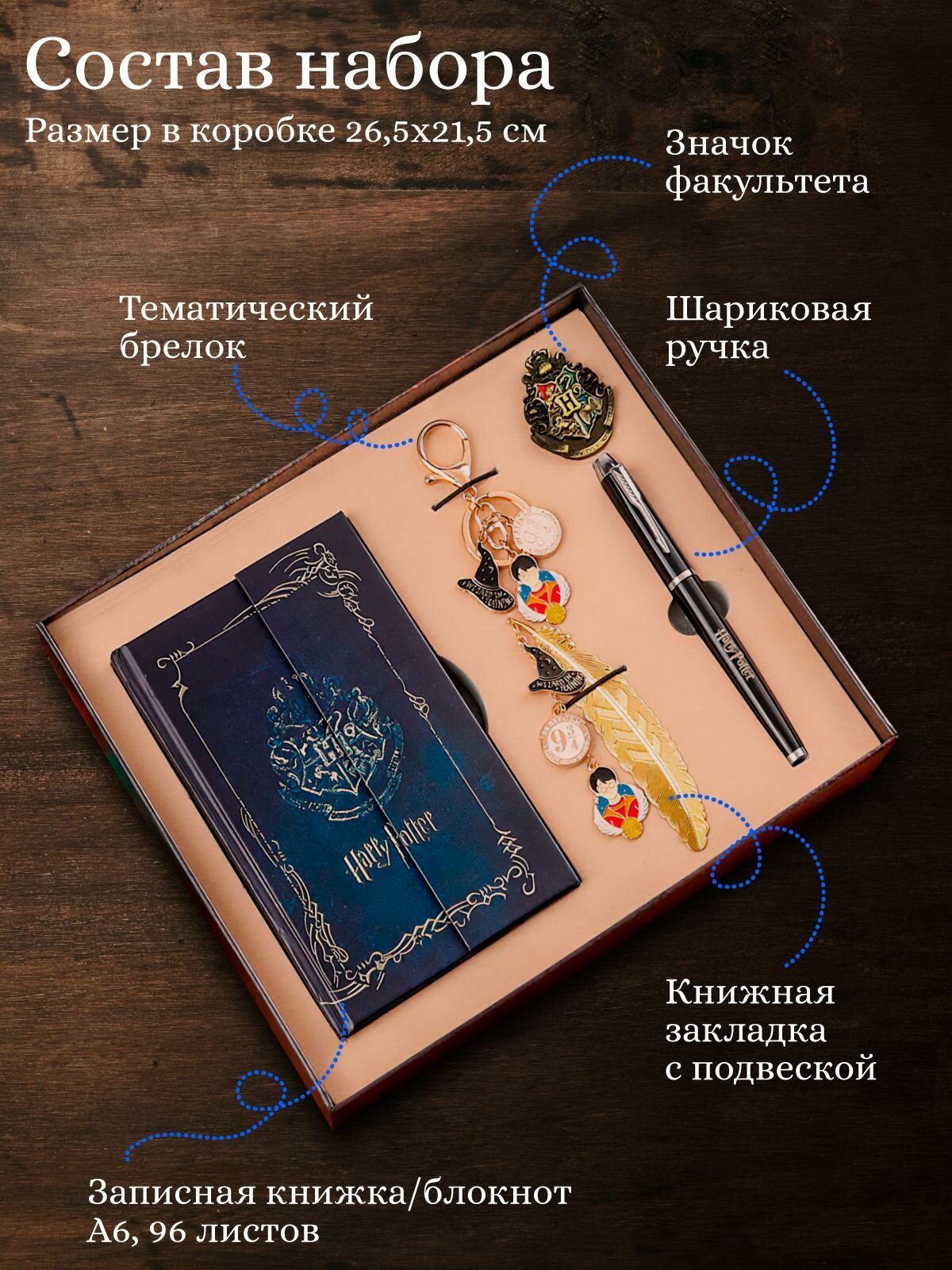 Купить Подарочный канцелярский набор Гарри Поттер Хогвартс с блокнотом, закладкой, ручкой, значком, брелком