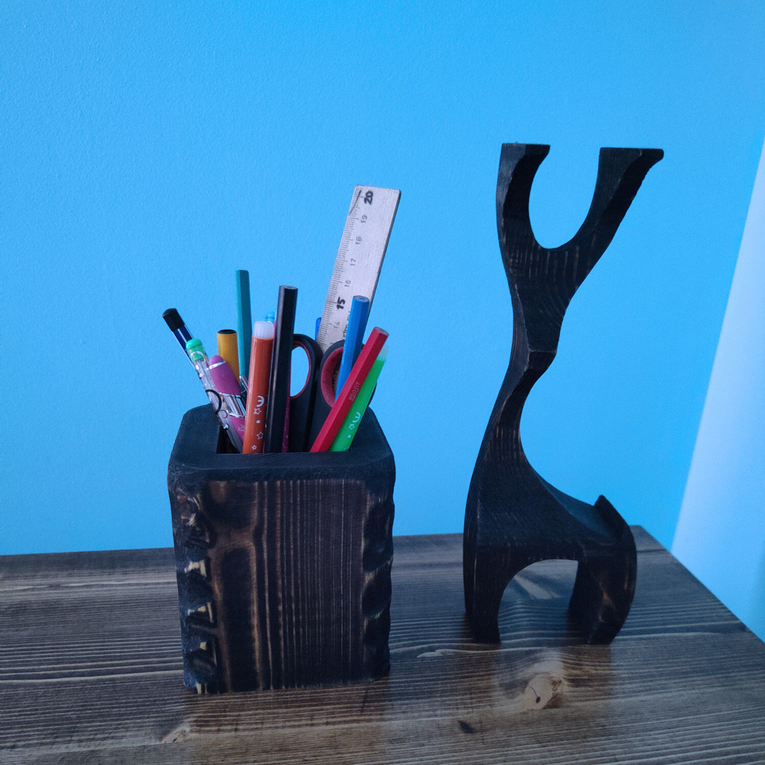 Подставка для канцелярских принадлежностей Квадратная цвет черный деревянная интересное: