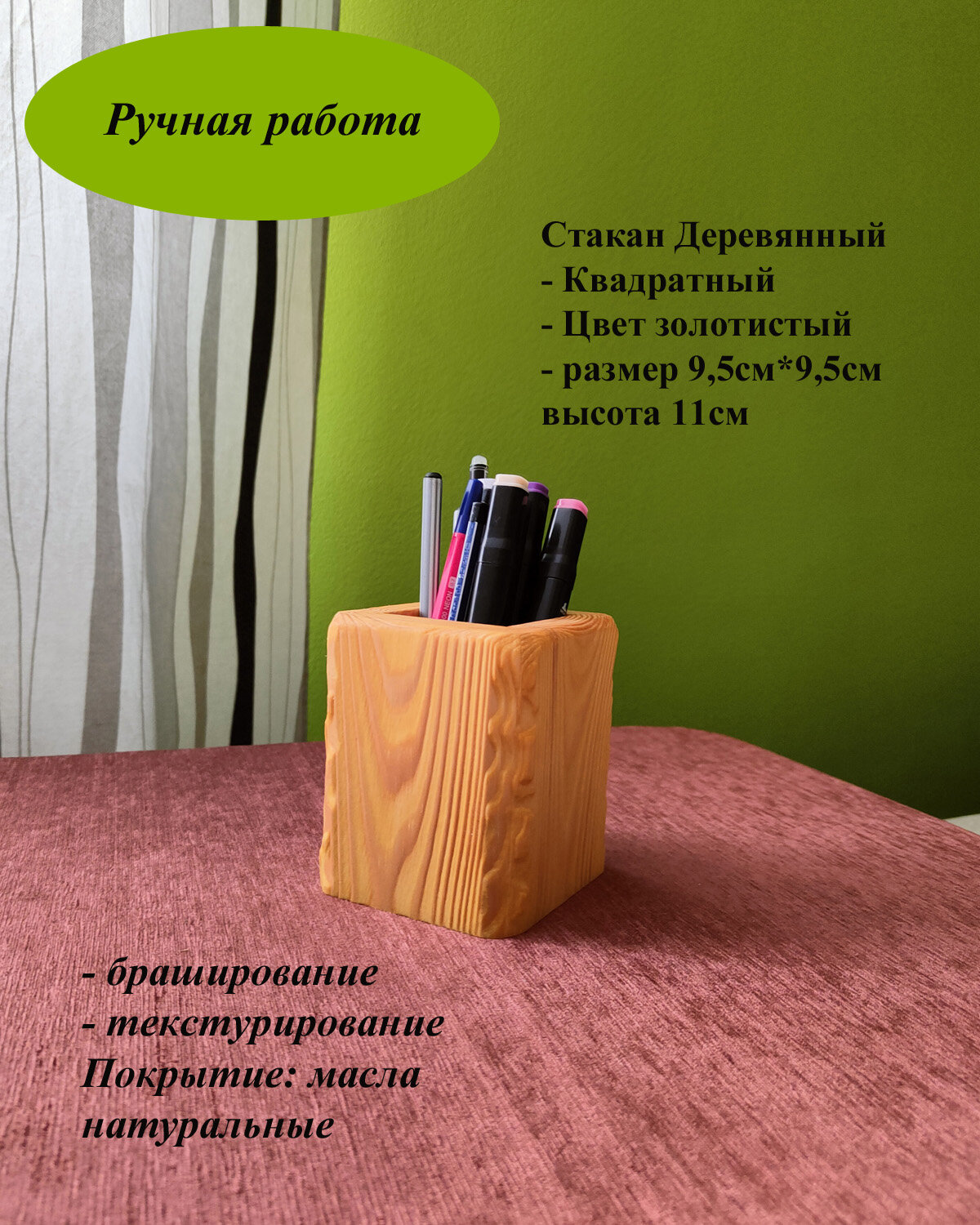 Подставка для канцелярских принадлежностей Квадратная цвет золотистый деревянная интересное: