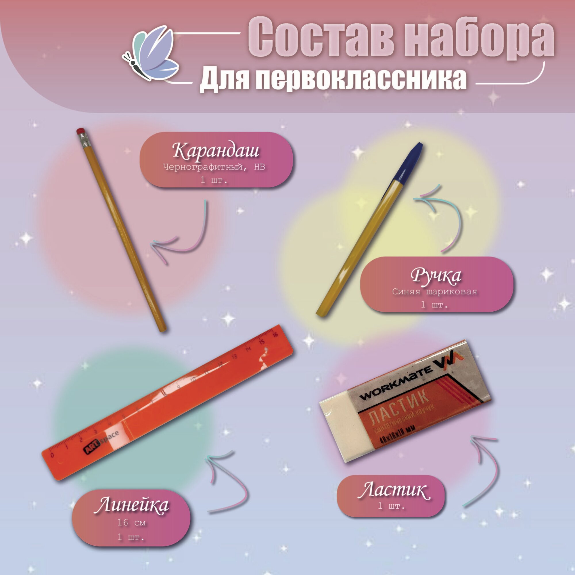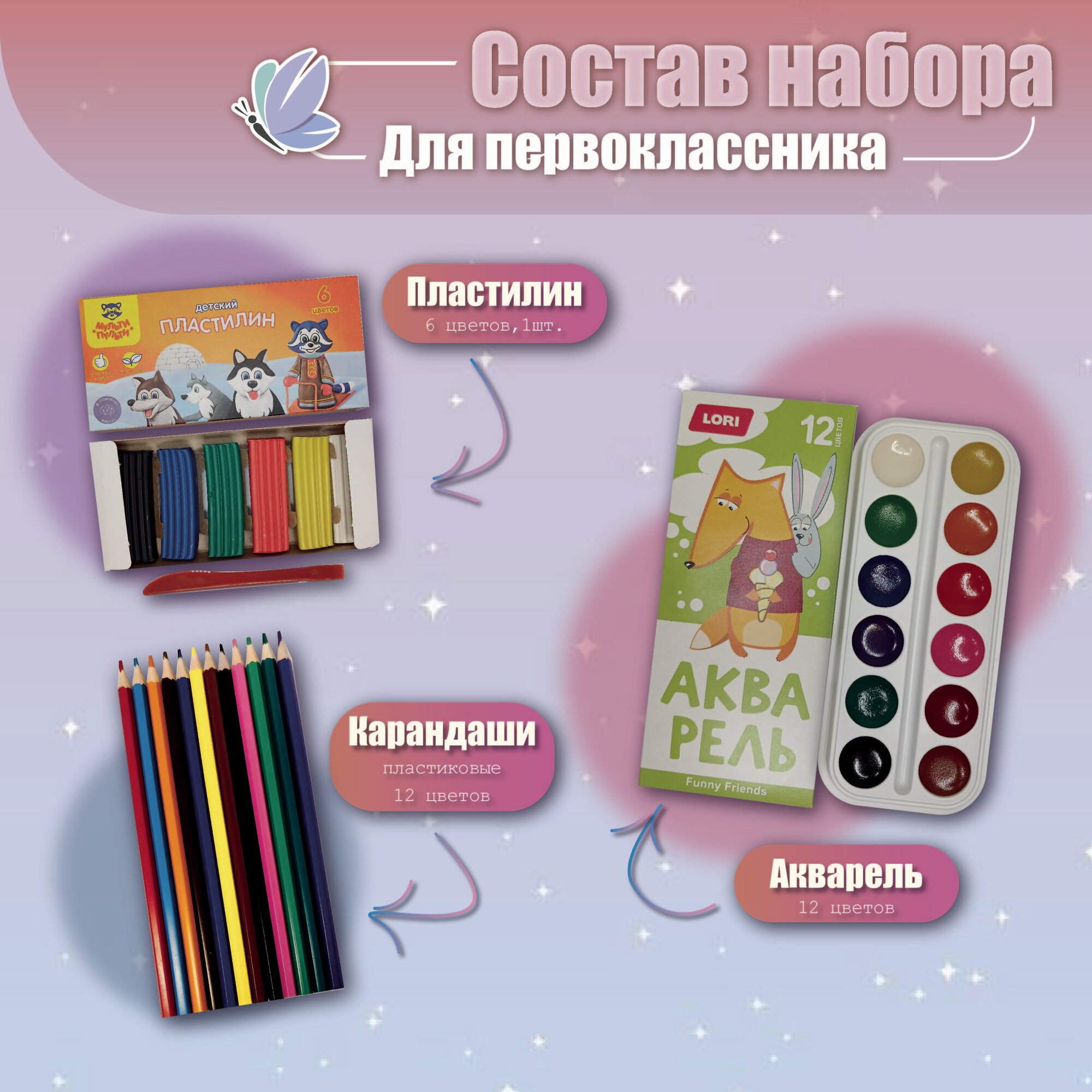 СохранитьНабор для начальной школы, для девочки 24 предмета "Бабочка" в папке, набор школьных канцелярских принадлежностей интересное: