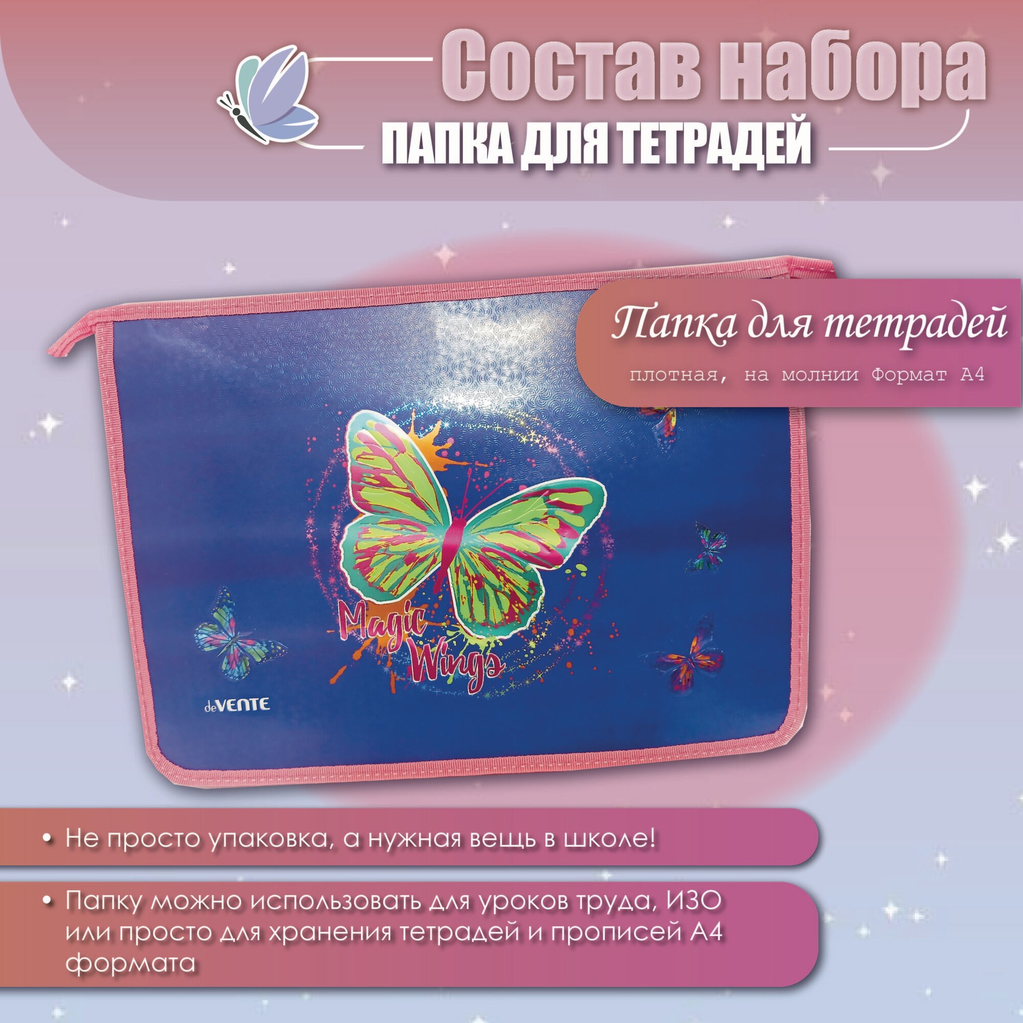 Купить Набор для начальной школы, для девочки 24 предмета "Бабочка" в папке, набор школьных канцелярских принадлежностей