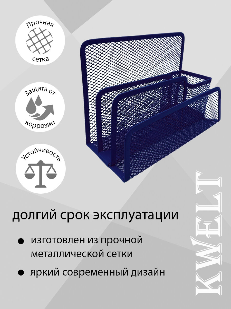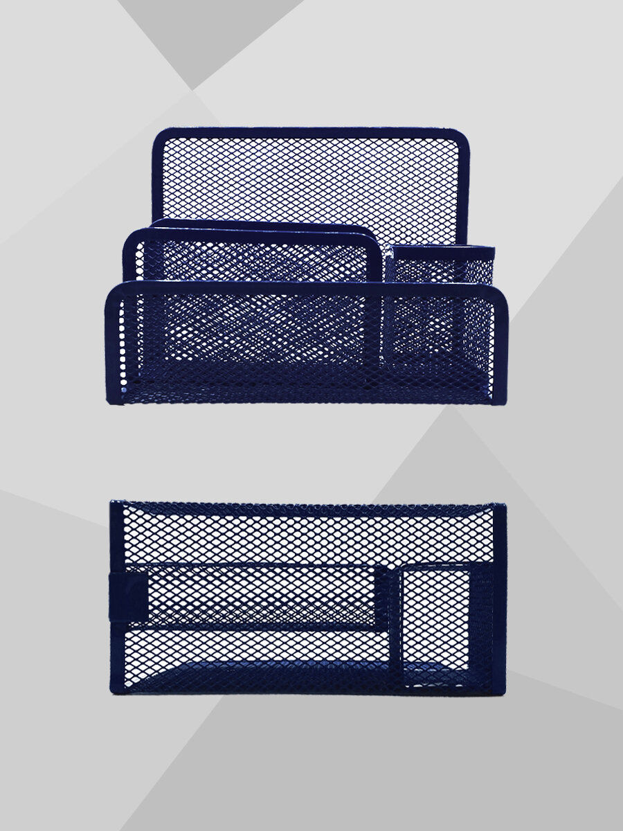 Купить Подставка KWELT 4 отделения, металлическая, сетчатая, 17 х 8 х 13 см, тёмно-синяя