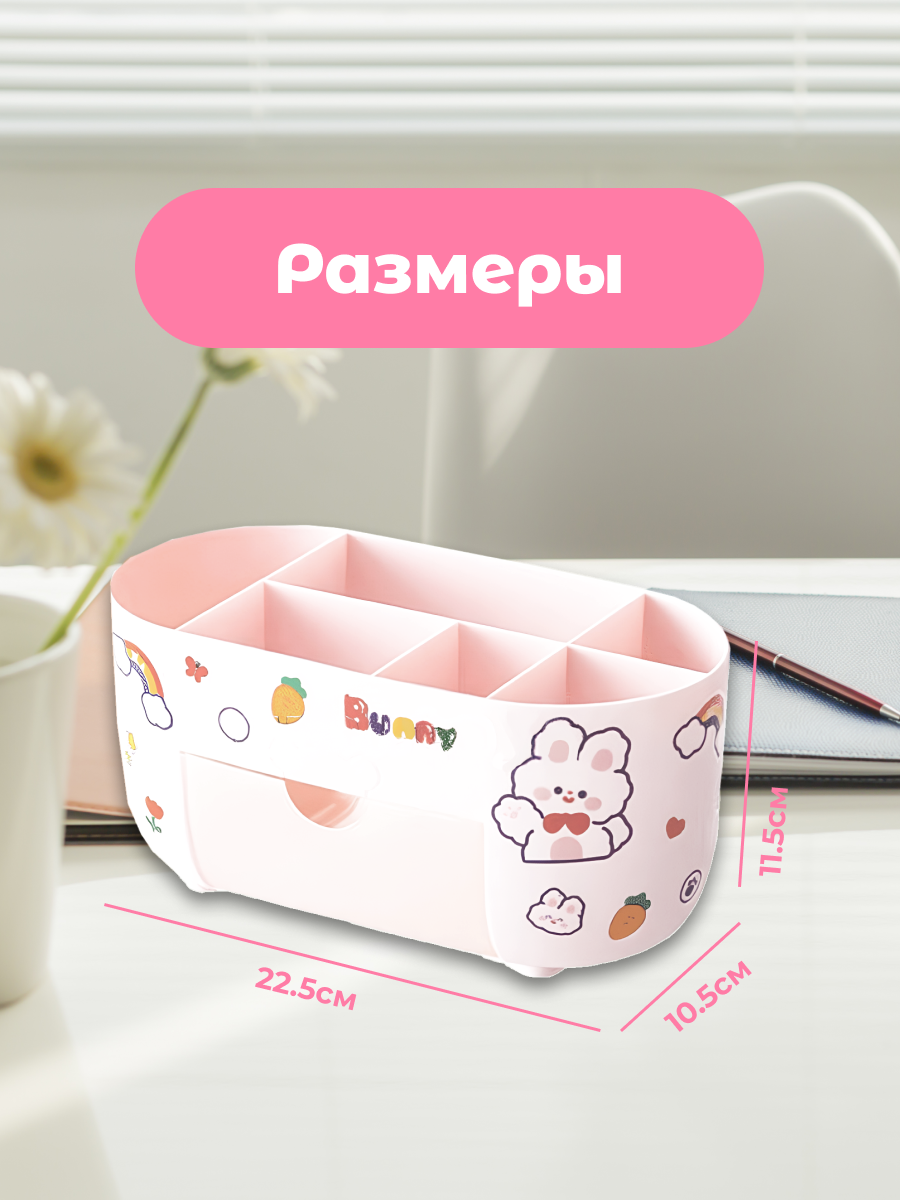 Подставка д/пишущих принадл. deVente "Bunny" 22,5*11,5*10,5см, с наклейками, розовая