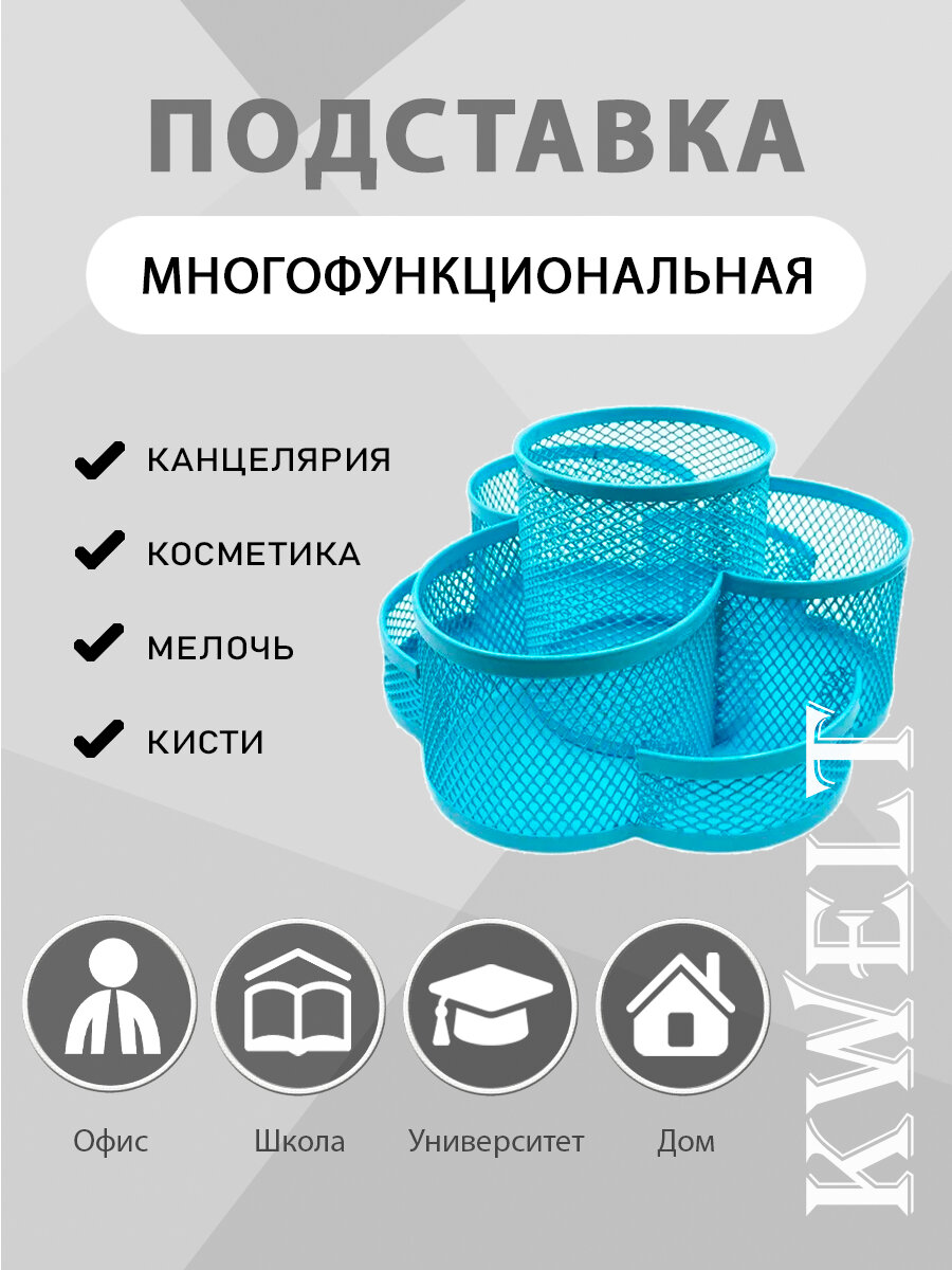 СохранитьПодставка KWELT 7 отделений, вращающаяся, металлическая, сетчатая, d 17 см, h 10,5 см, голубая интересное: