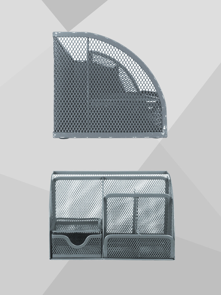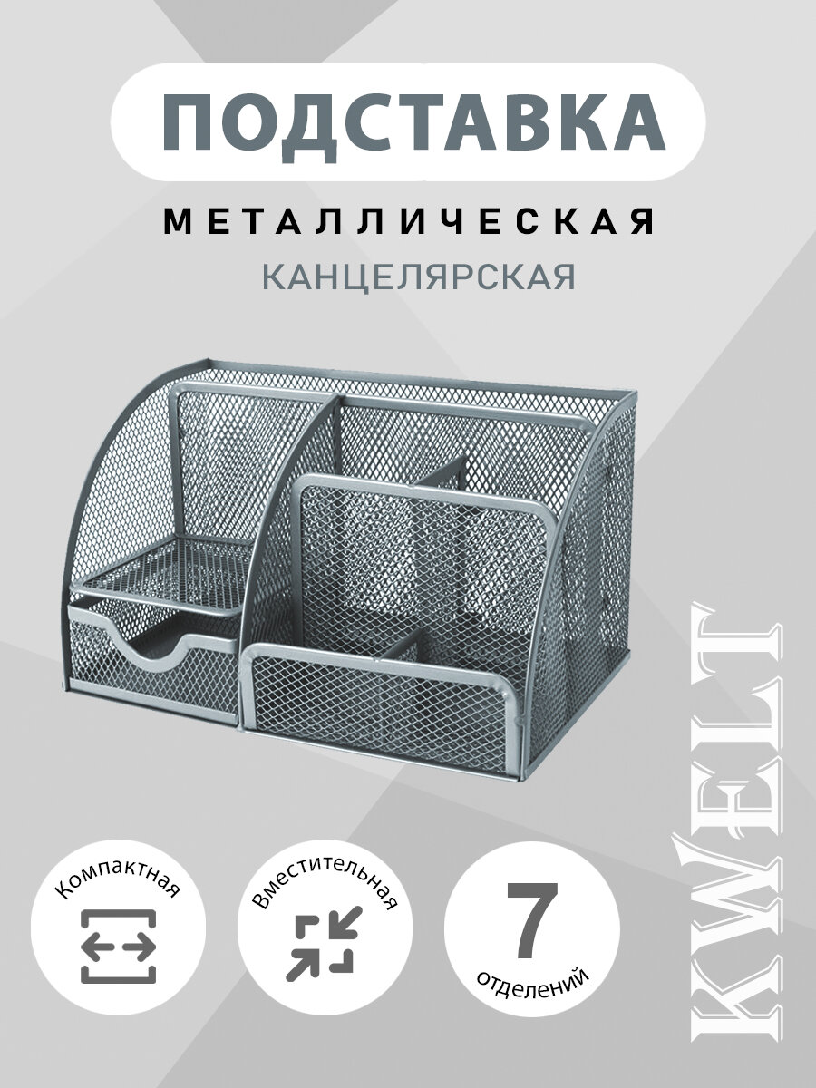 Купить Подставка " KWELT " 7 отделений (1 выдвижное), металлическая, сетчатая, серебро, картонная упаковка 22*14*13см