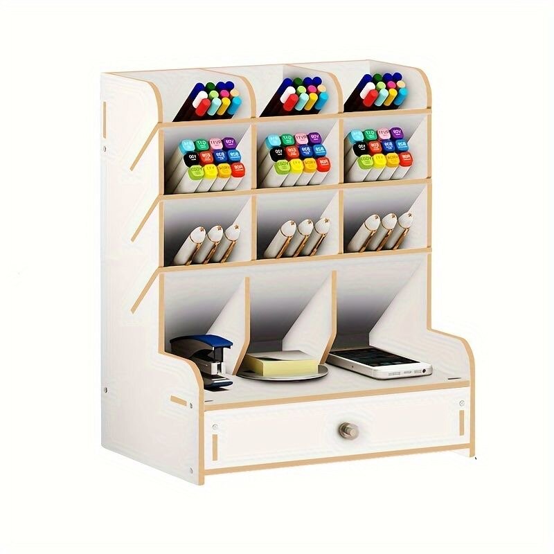 Купить Настольный деревянный органайзер для канцелярии, подставка для карандашей и ручек, белый