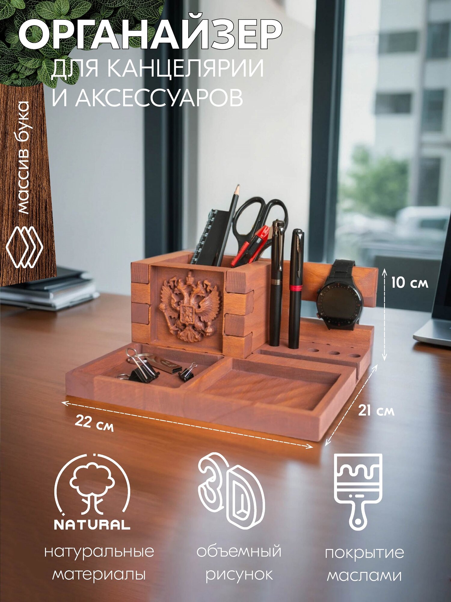 СохранитьОрганайзер для канцелярии и аксессуаров настольный деревянный Герб России подарочный интересное: