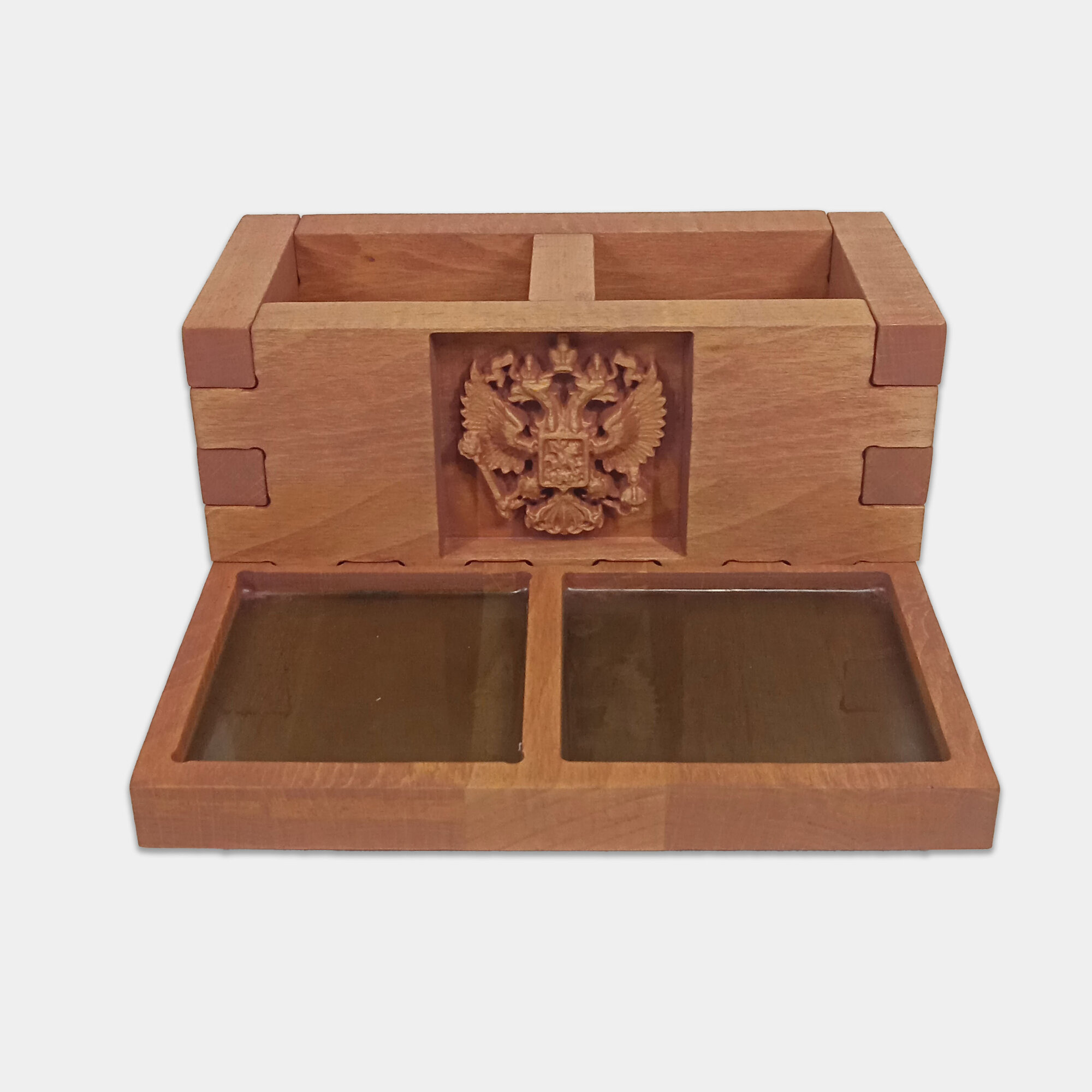 Органайзер для канцелярии и аксессуаров настольный деревянный Герб России подарочный