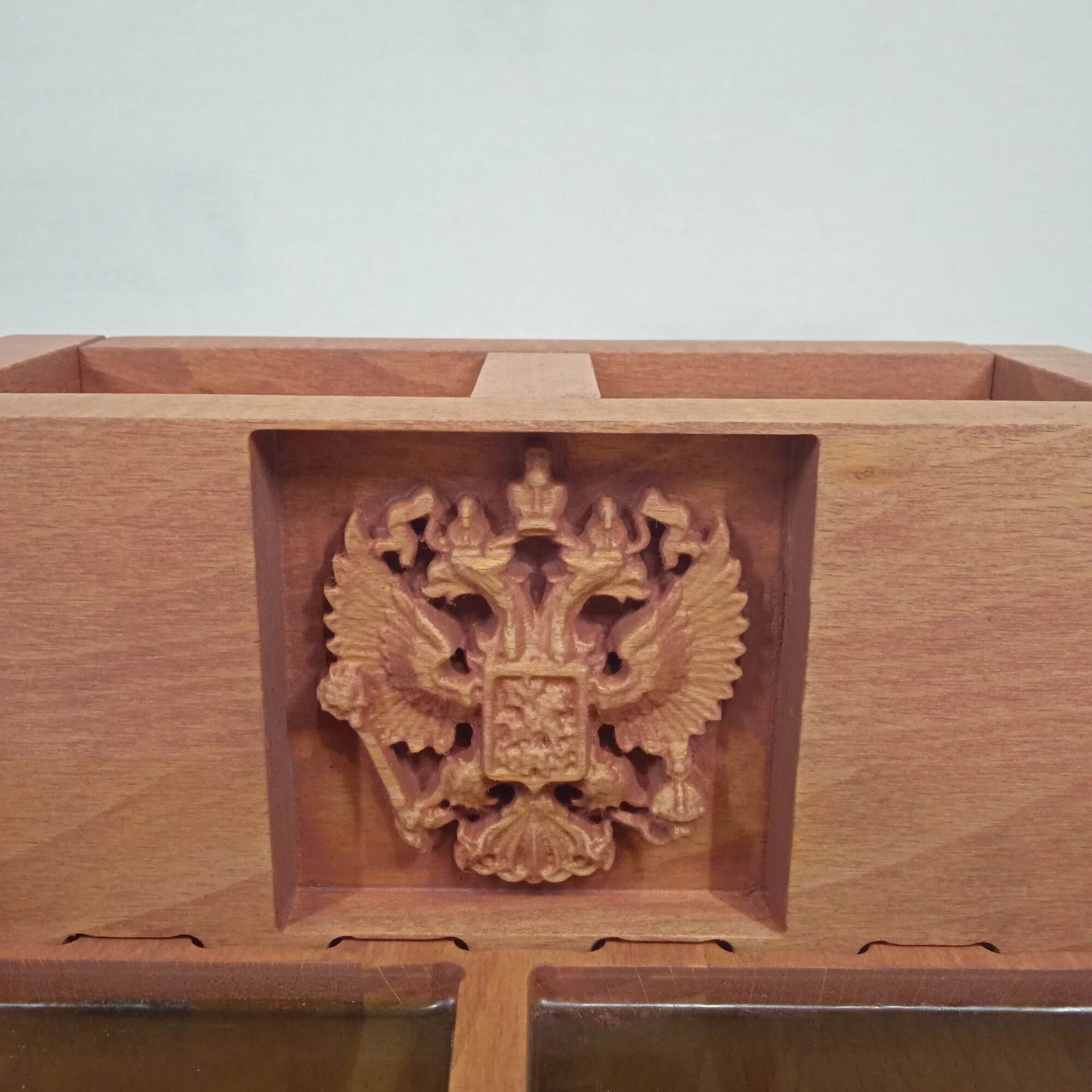 СохранитьОрганайзер для канцелярии настольный деревянный Герб России подарочный интересное: