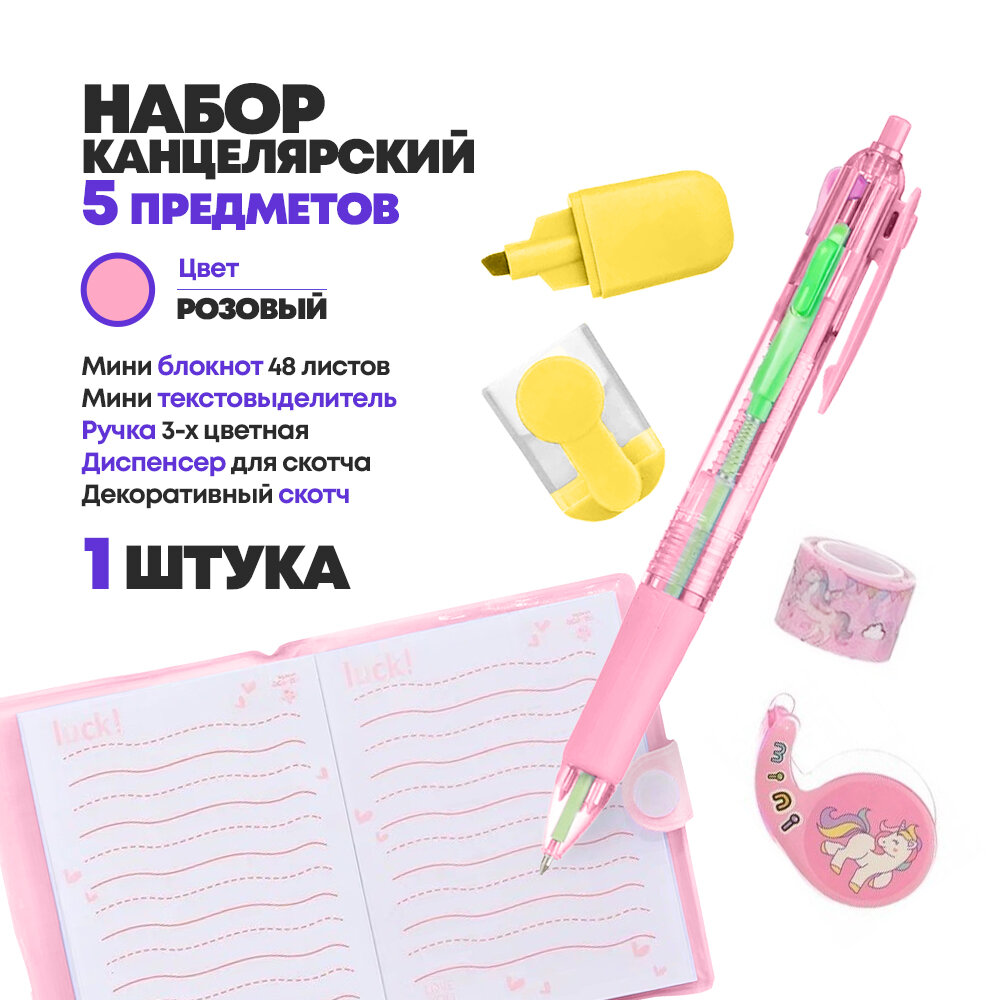 Канцелярский детский набор MC-Basir, с ручкой, текстовыделителем и блокнотом интересное:
