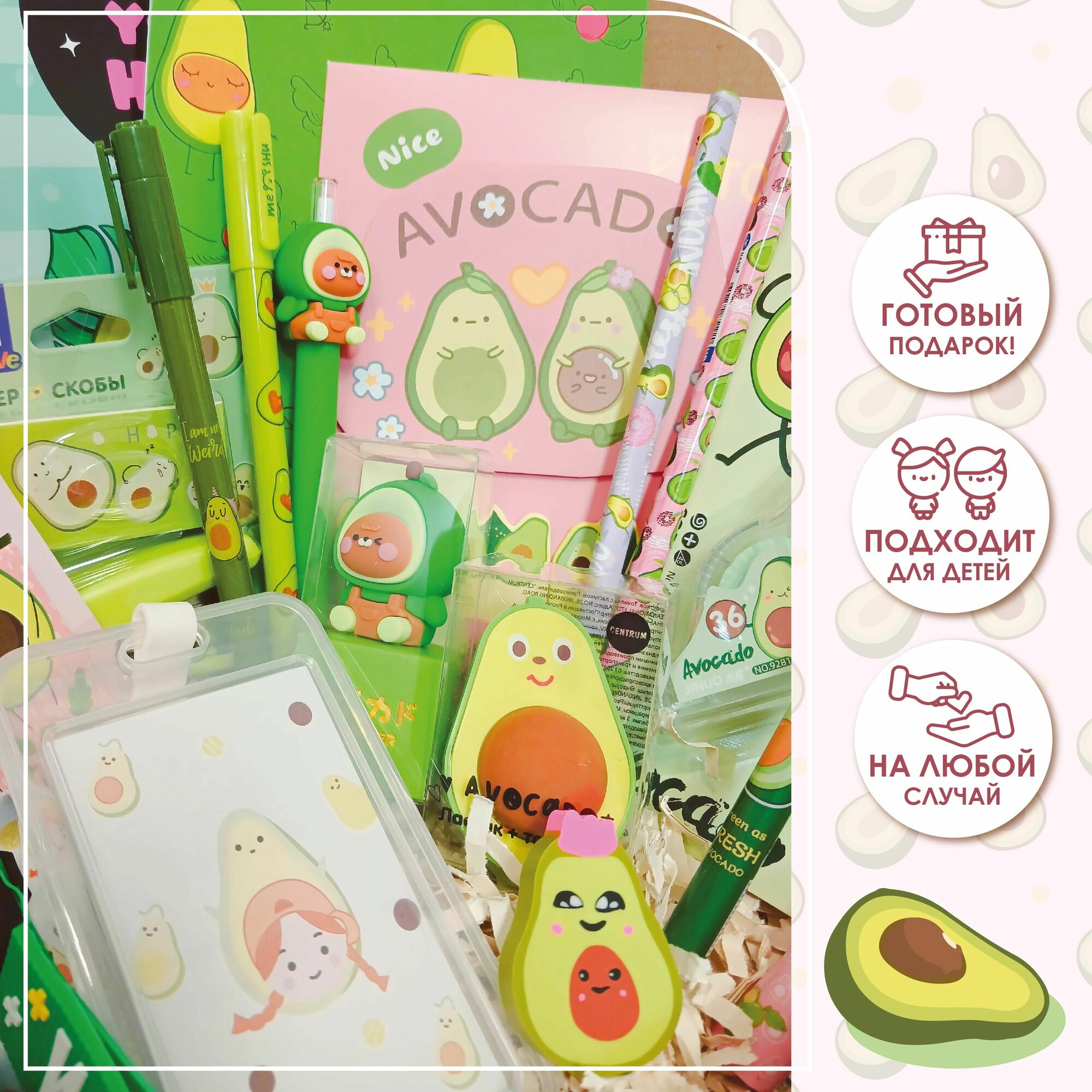 Купить Набор канцелярии "Авокадимся!" 25+1 предметов, бокс письменных принадлежностей в подарочной коробке, канцелярский набор для школы