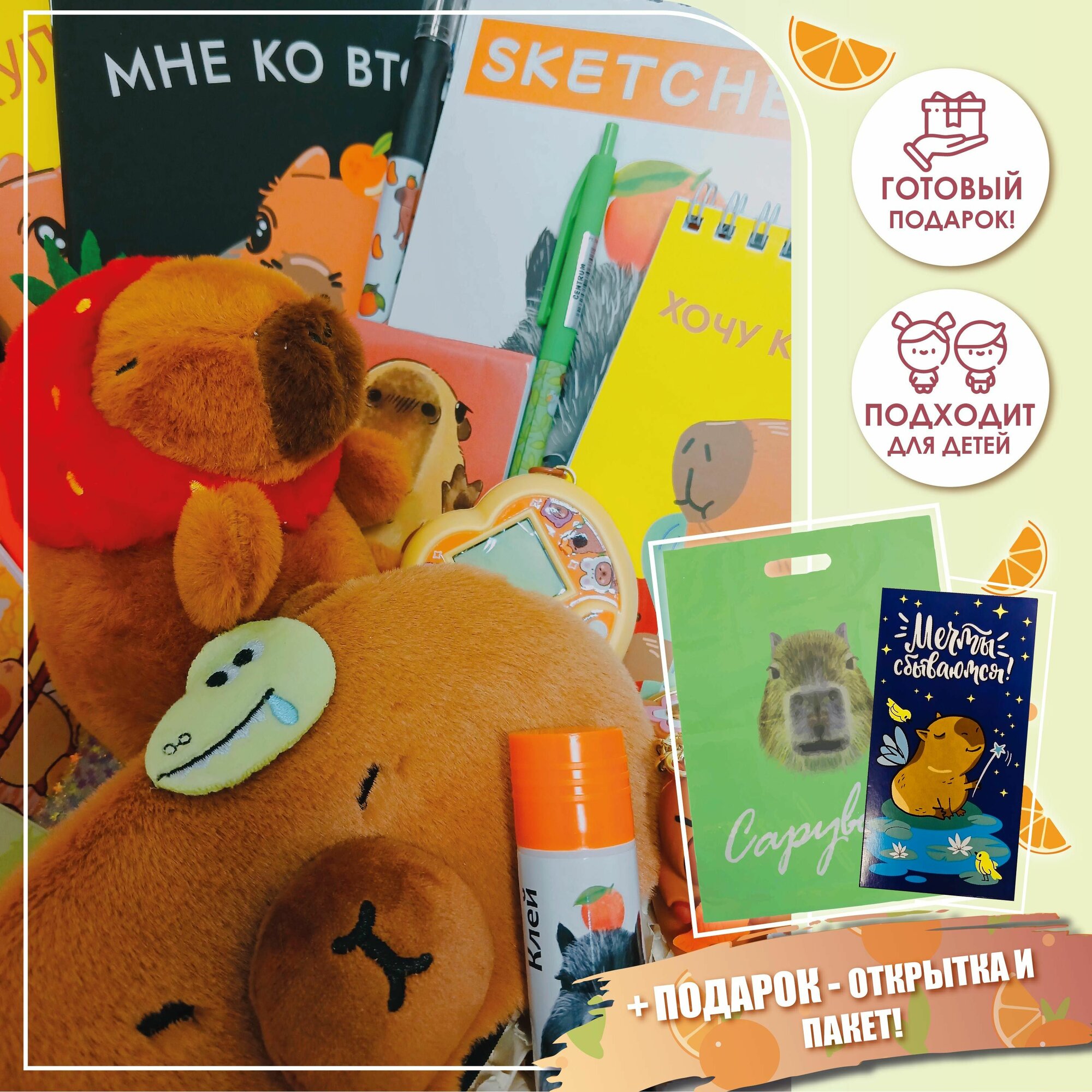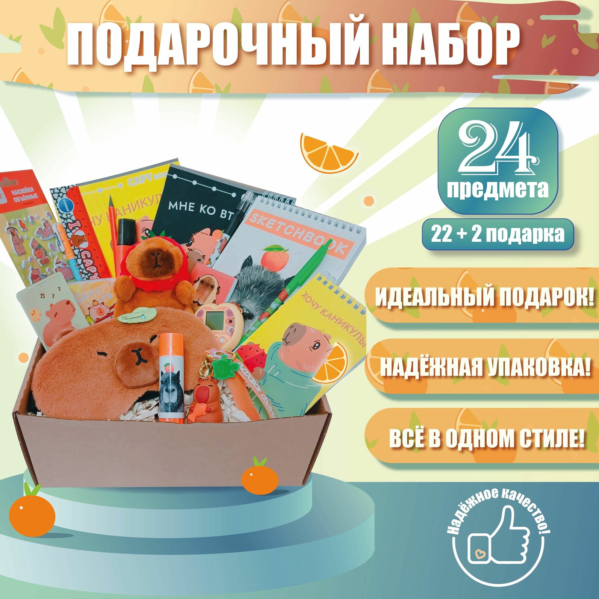 Купить Набор канцелярии "надобности-капибарности" 21+2 предметов в подарочной коробке, подарочный бокс письменных принадлежностей, канцелярский набор для школы