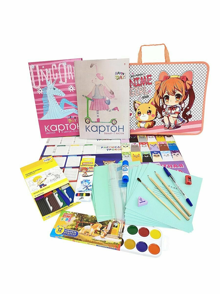 Набор первоклассника в папке "Здравствуй, школа!" для девочек, 29 предметов интересное: