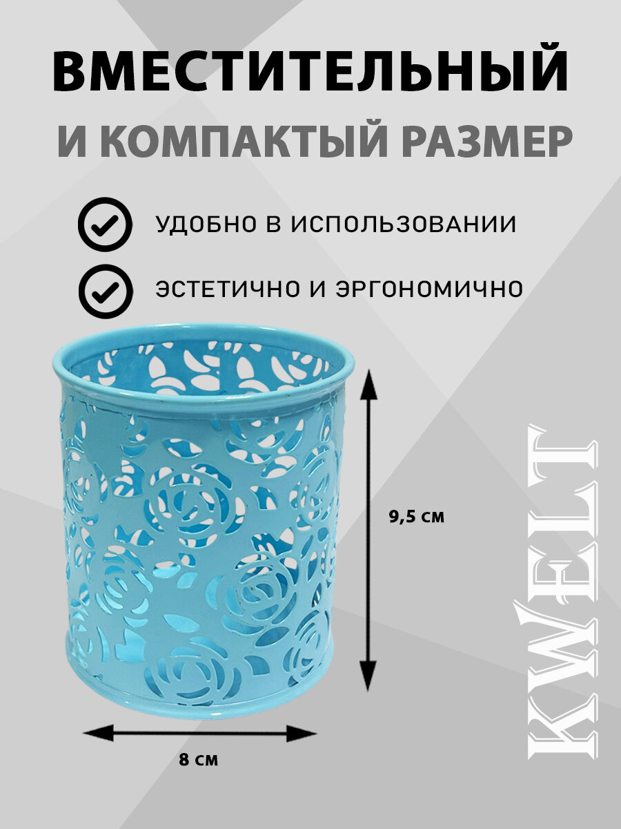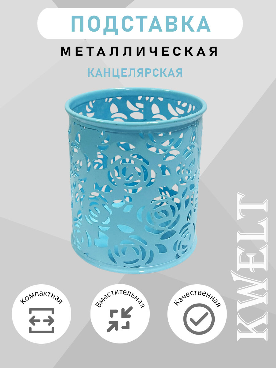 Стакан-подставка " KWELT " 8*9,5см, металлический ажурный, цветы, круглый, голубой интересное: