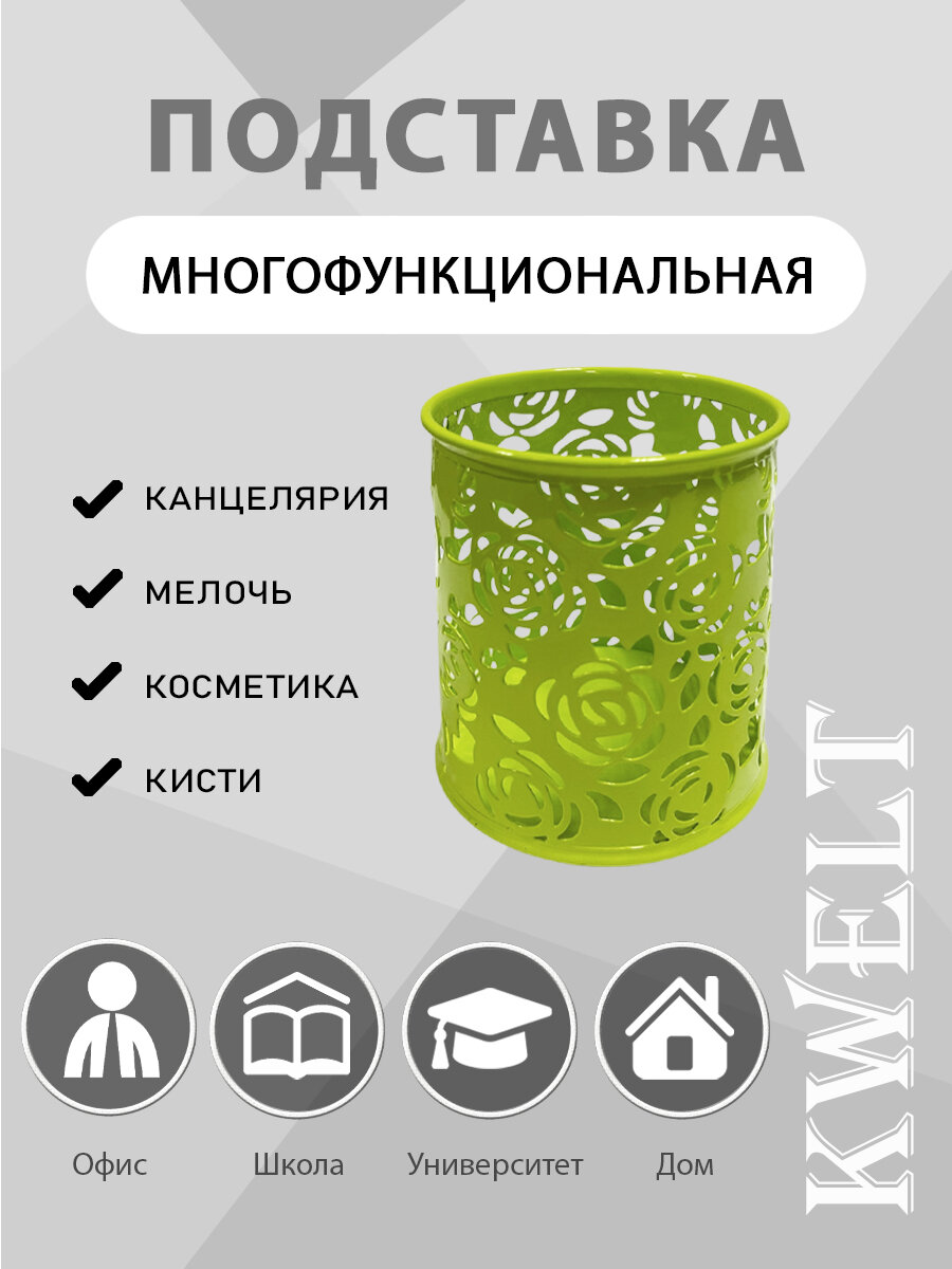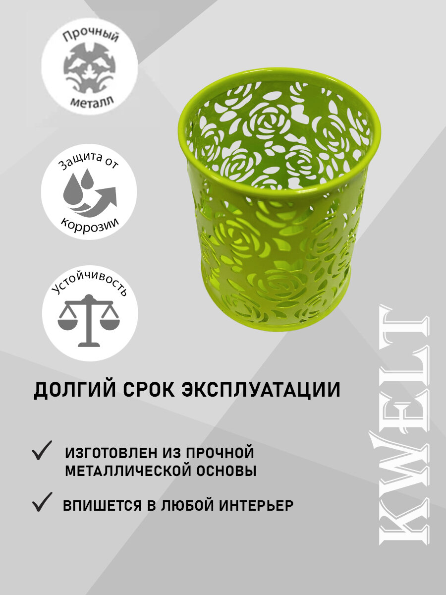 Стакан-подставка " KWELT " 8*9,5см, металлический ажурный, цветы, круглый, салатовый интересное: