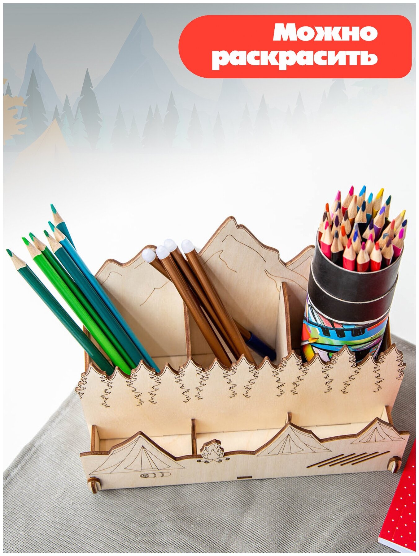 Деревянный органайзер для канцелярии Robokub Кемпинг - подставка для карандашей и ручек интересное: