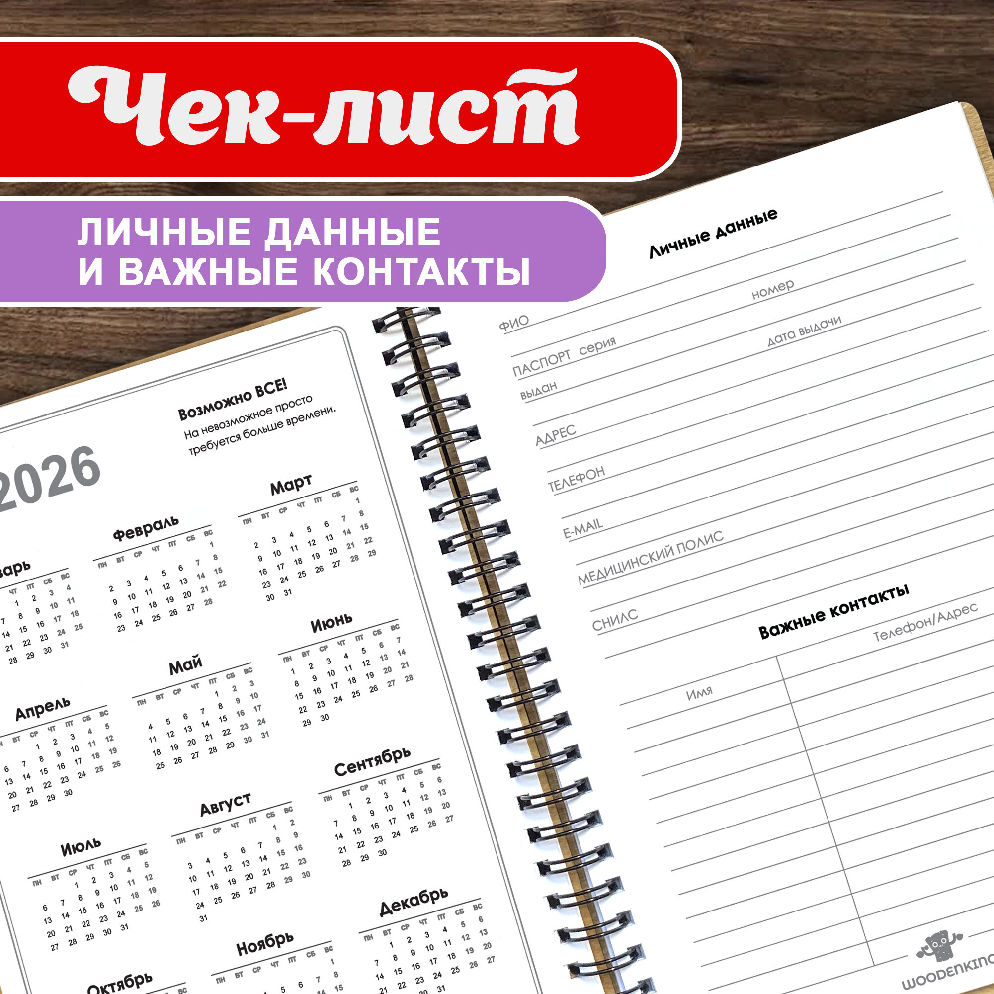 Блокнот с ручкой Woodenking А5 в клетку. Недатированная записная книжка, подарок "Нет Вершин, что взять нельзя"