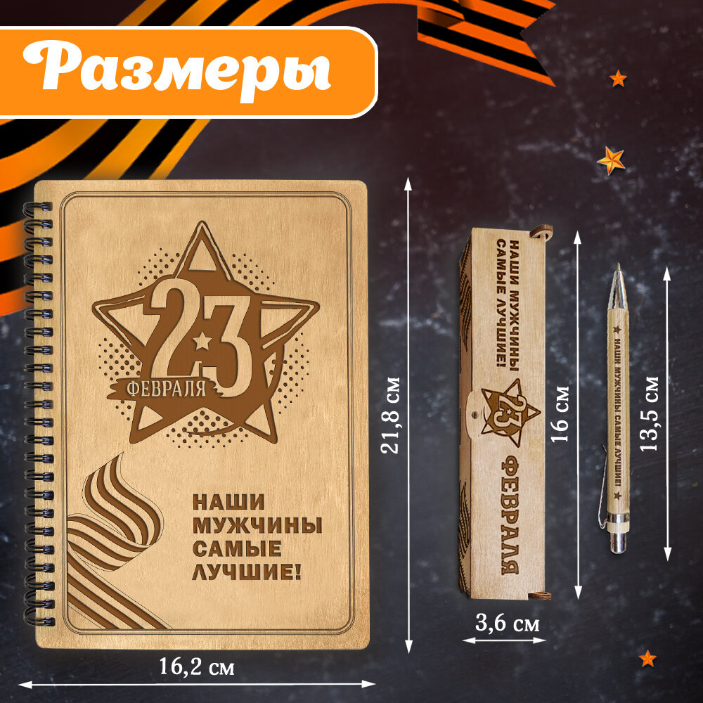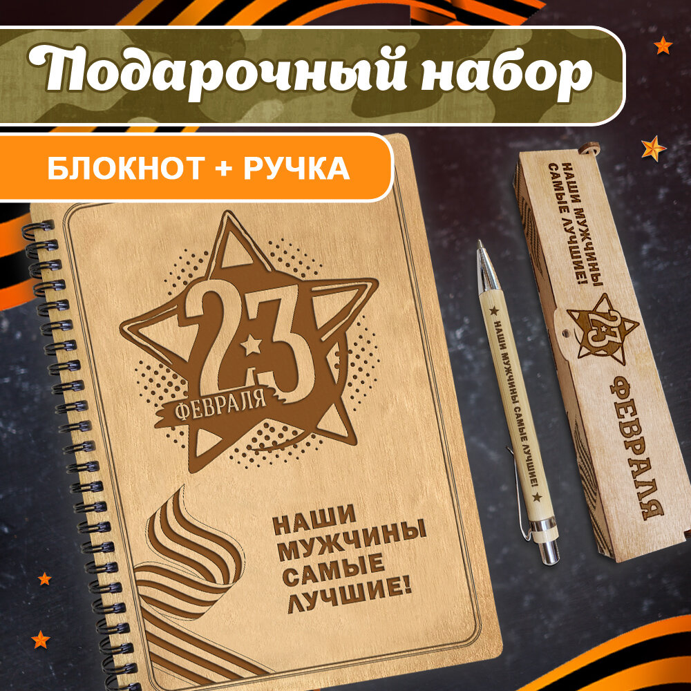 Купить Блокнот для записей с ручкой Woodenking "Наши мужчины", деревянный, подарочный, А5, 60 листов, в клетку, мужчине
