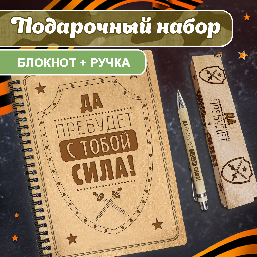 Купить Блокнот с ручкой мужчине Woodenking подарочный А5 для записей в клетку. Недатированная записная книжка "Да прибудет с тобой сила"