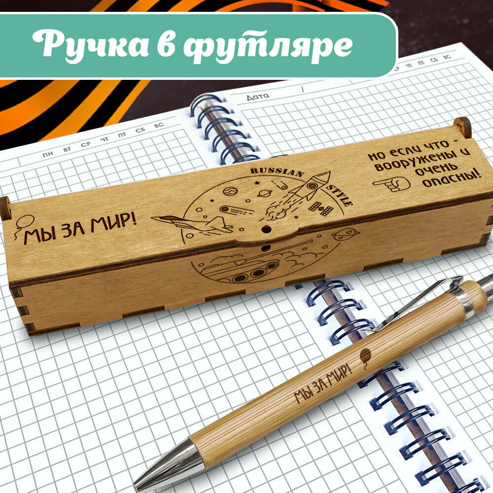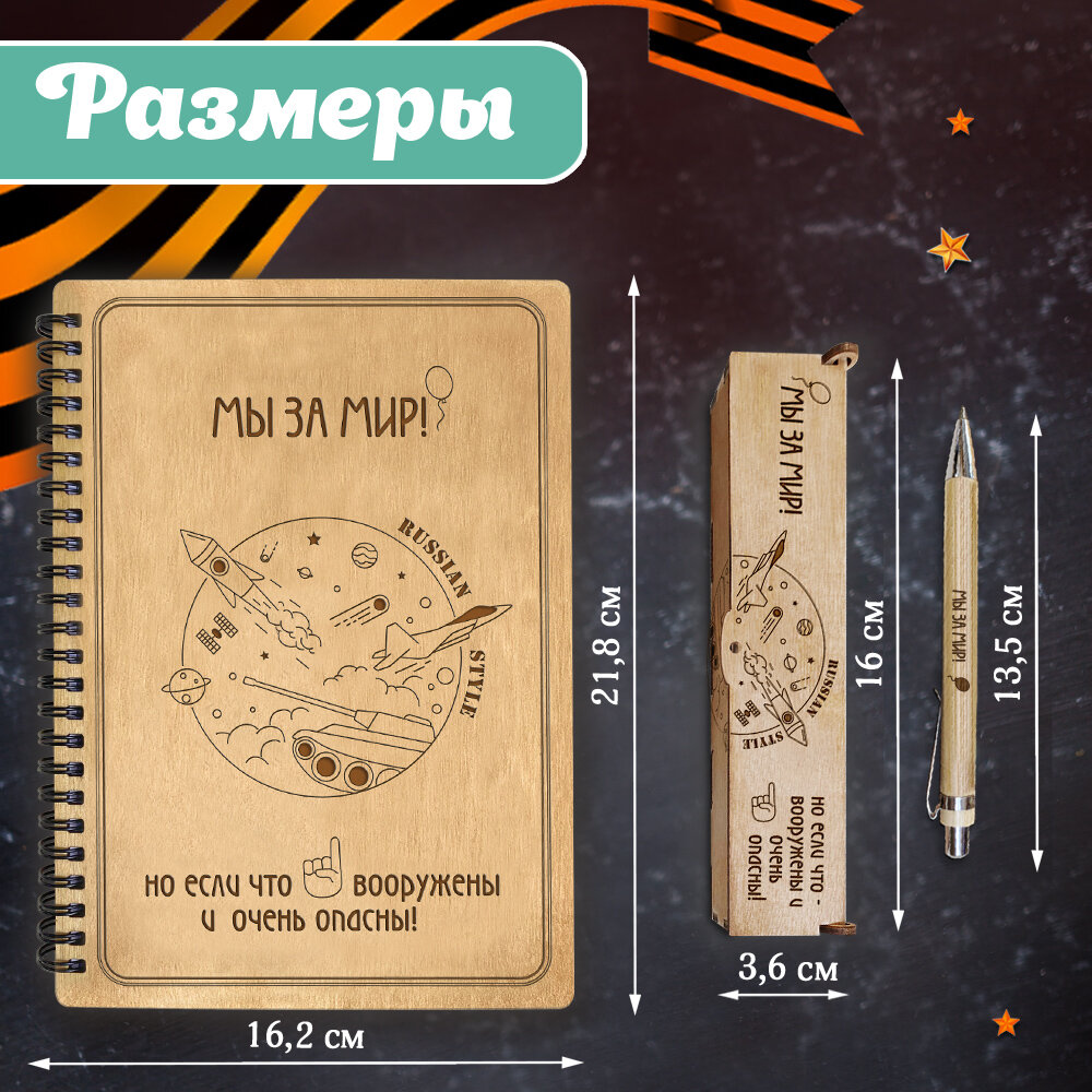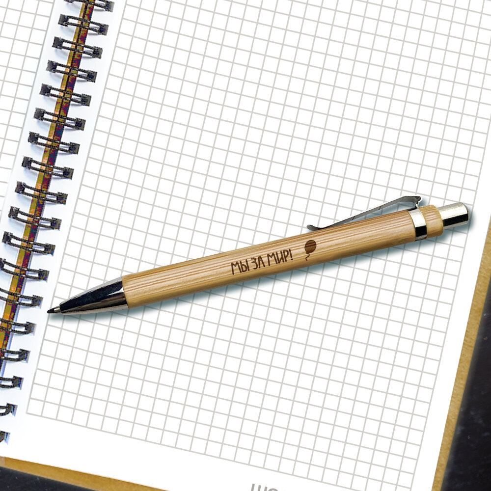 СохранитьБлокнот с ручкой мужчине Woodenking подарочный А5 для записей в клетку. Недатированная записная книжка "МЫ за МИР" интересное: