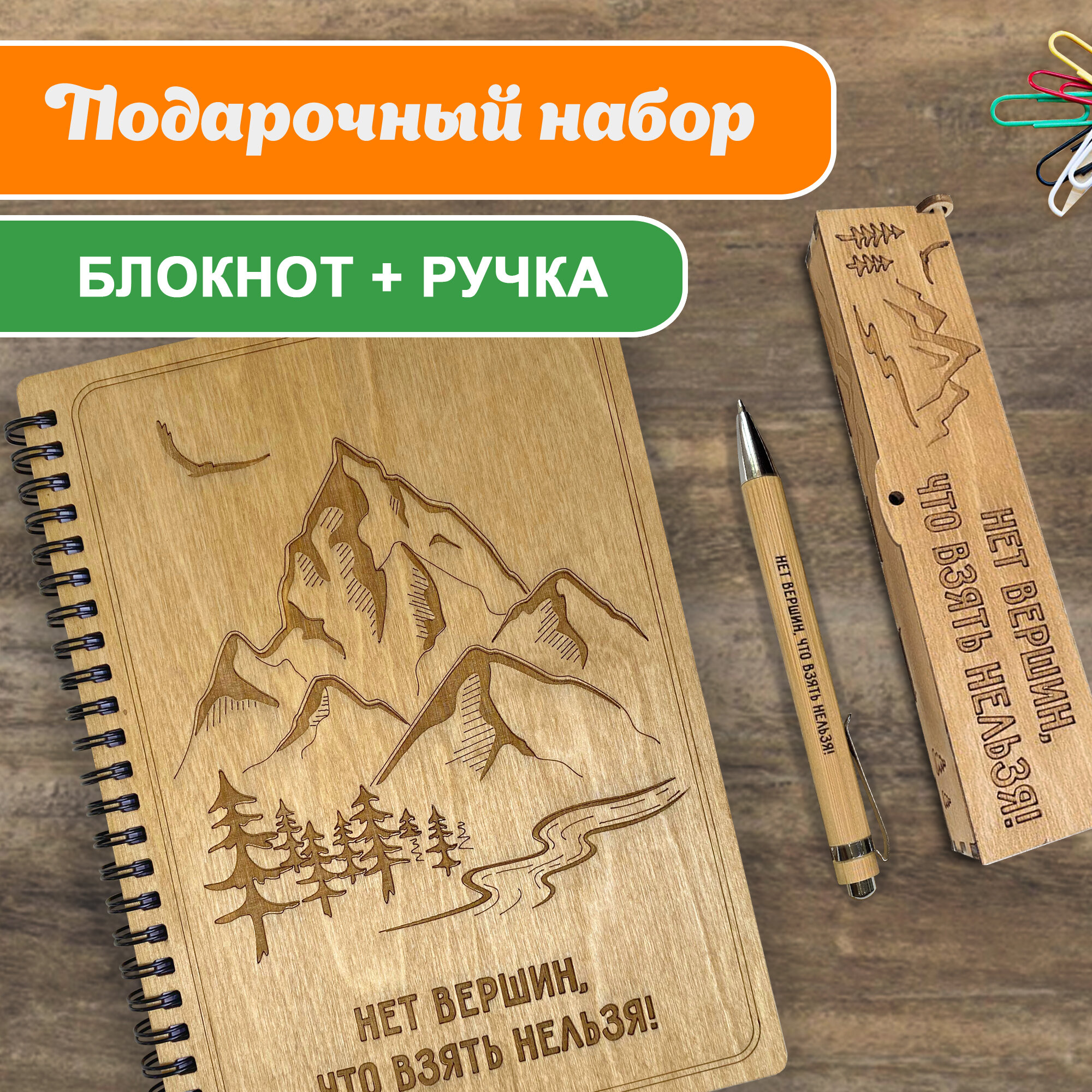 Купить Блокнот с ручкой Woodenking А5 в клетку. Недатированная записная книжка, подарок "Нет Вершин, что взять нельзя"