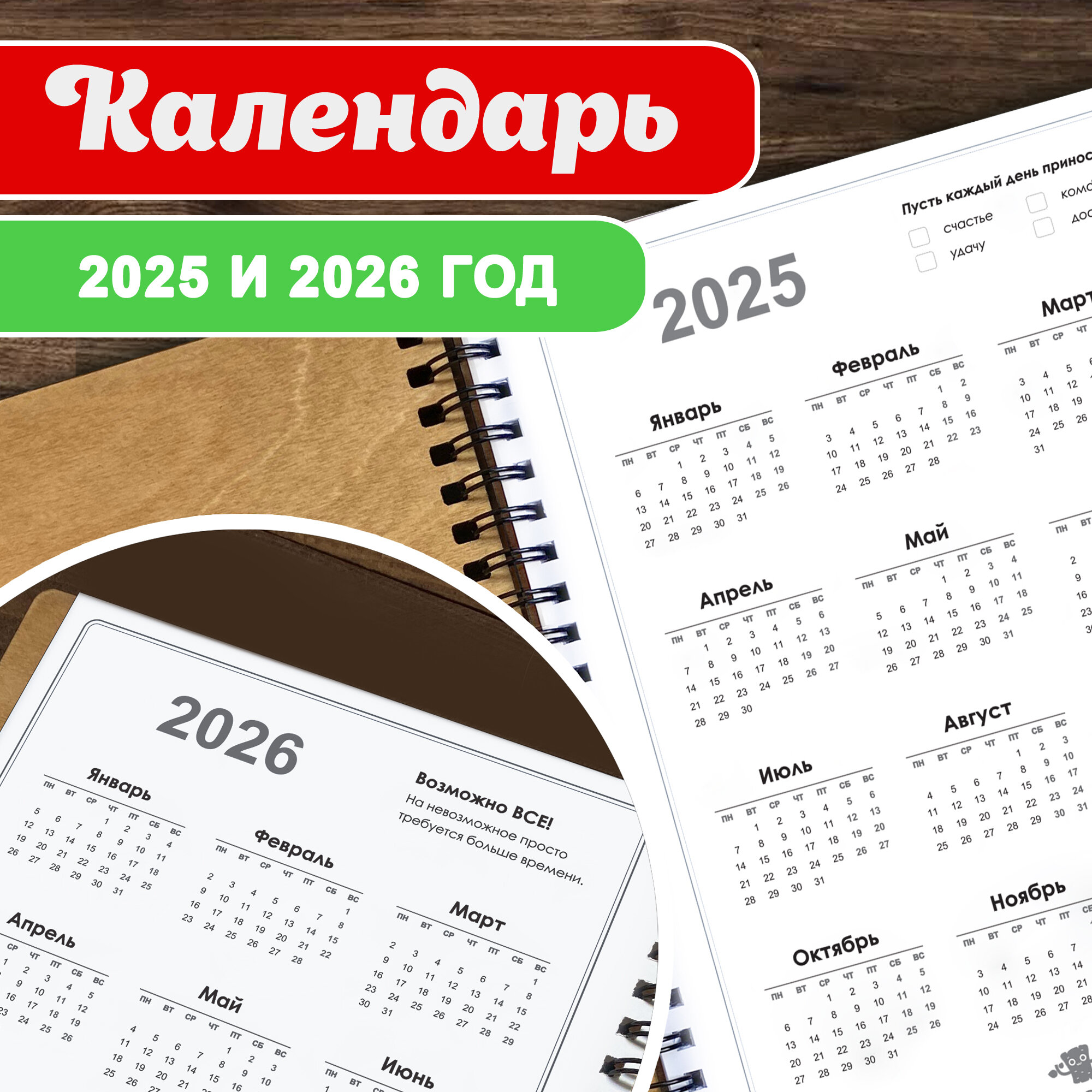 Блокнот с ручкой Woodenking подарочный А5 для записей в линейку. Недатированная записная книжка "С новым 2025 годом!"