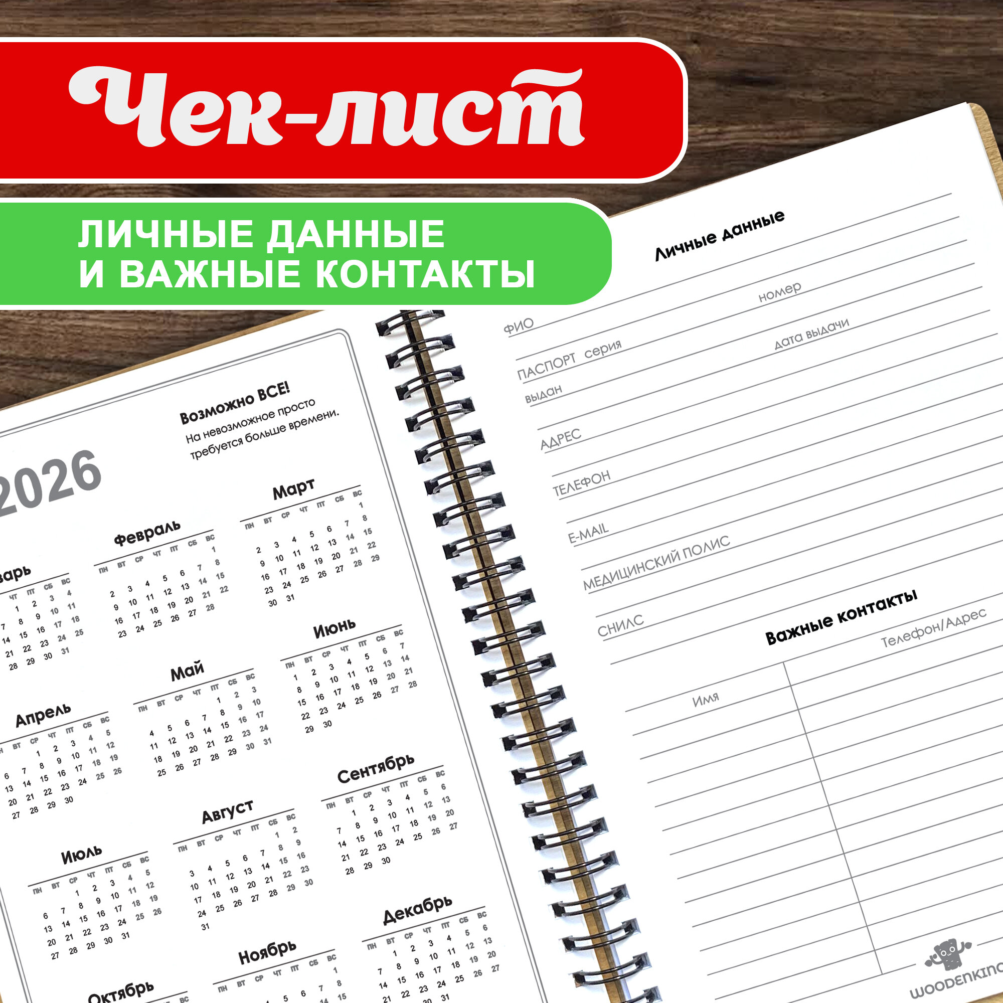 Блокнот с ручкой Woodenking А5 в клетку. Недатированная записная книжка, подарок "Нет Вершин, что взять нельзя"