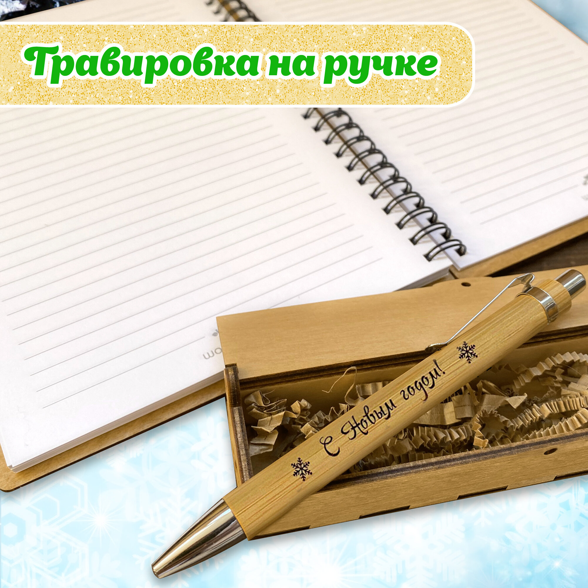 Блокнот с ручкой Woodenking подарочный новогодний А5 для записей в линейку. Недатированная записная книжка "Счастья в новом году!"