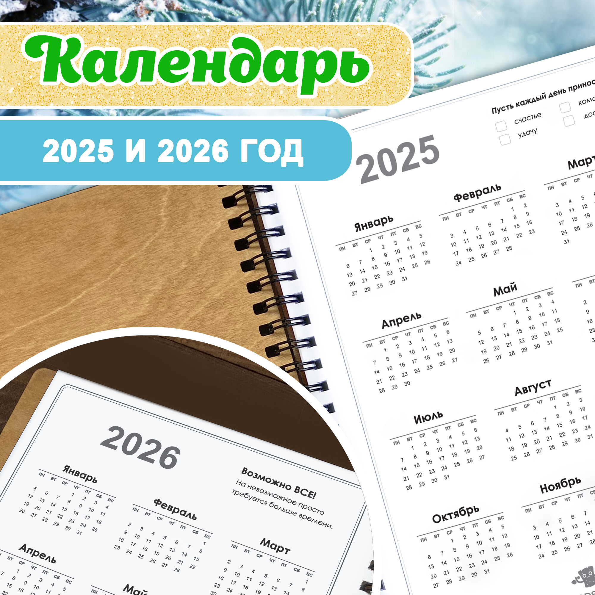 СохранитьБлокнот с ручкой Woodenking подарочный А5 для записей в линейку. Недатированная записная книжка "С новым 2025 годом!" интересное: