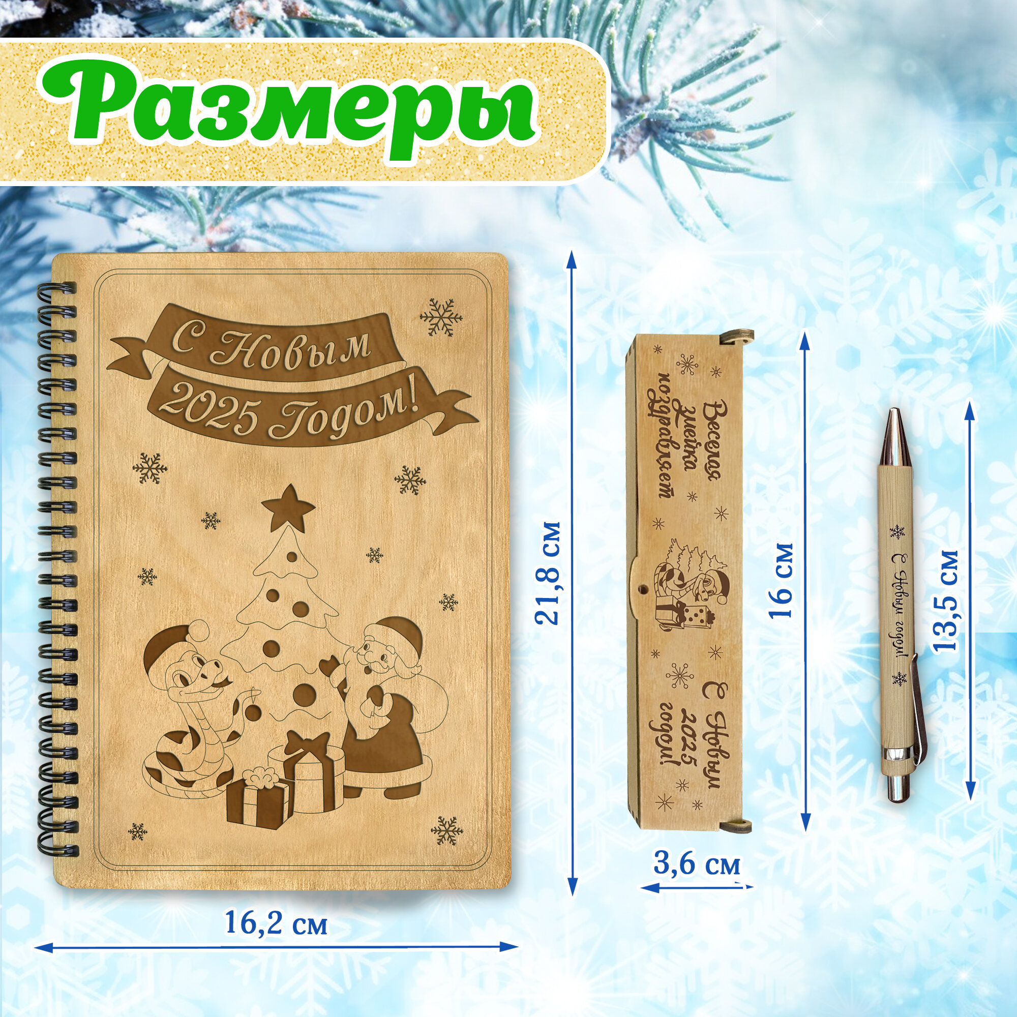 Купить Блокнот с ручкой Woodenking подарочный А5 для записей в линейку. Недатированная записная книжка "С новым 2025 годом!"