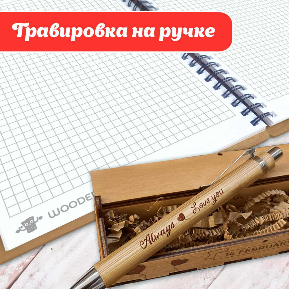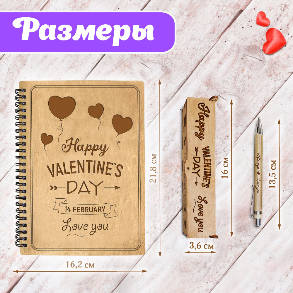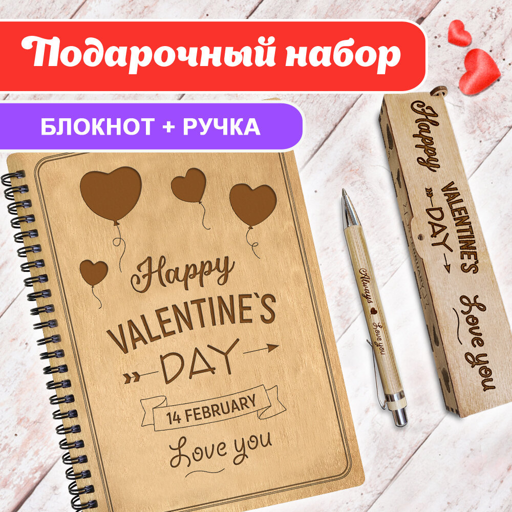 СохранитьБлокнот с ручкой Woodenking подарочный А5 для записей в клеточку. Недатированная записная книжка "HAPPY VALENTINE DAY" интересное: