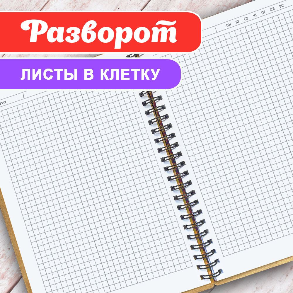 Блокнот с ручкой мужчине Woodenking подарочный А5 для записей в клетку. Недатированная записная книжка "МЫ за МИР"