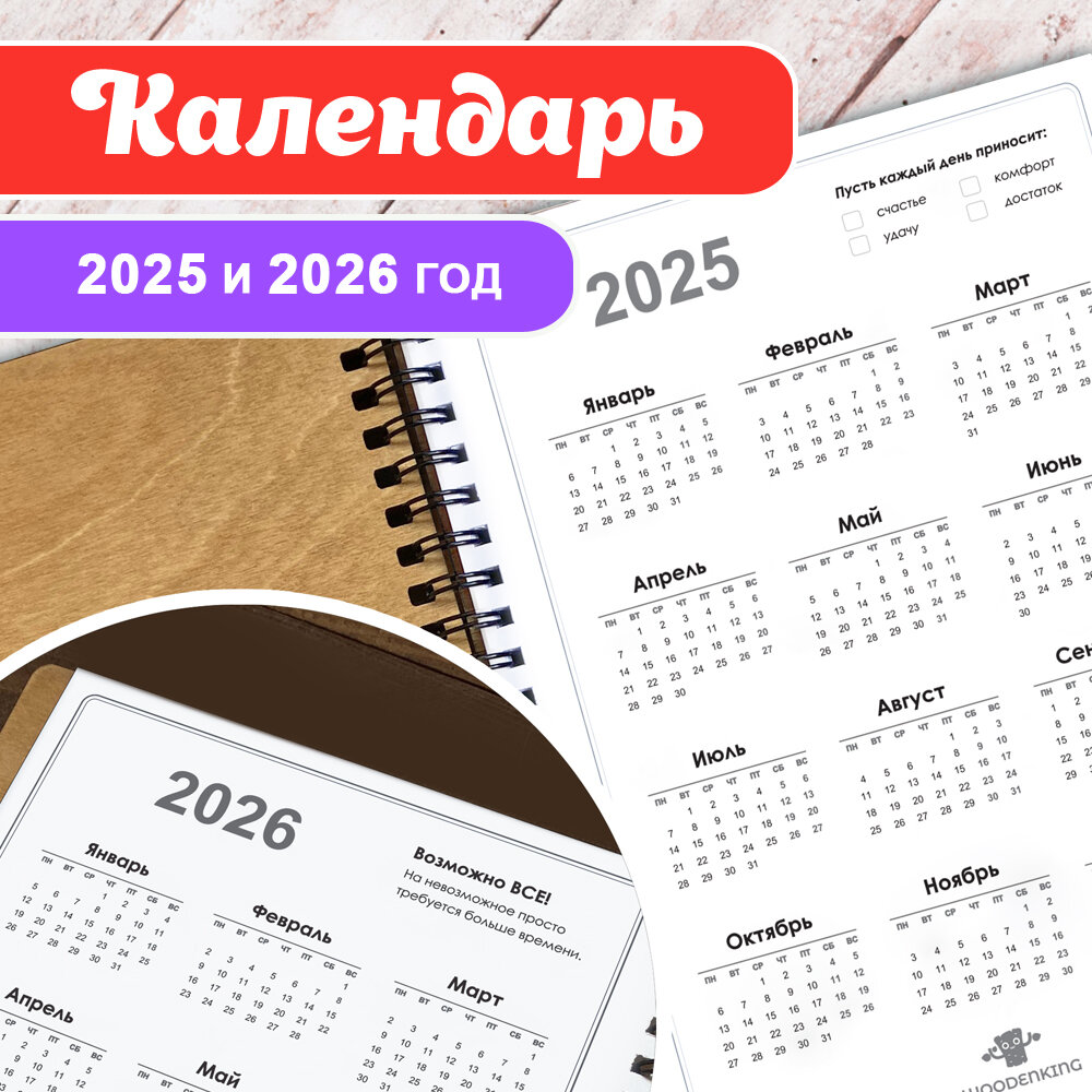 Блокнот с ручкой Woodenking подарочный А5 для записей в линейку. Недатированная записная книжка "С новым 2025 годом!"