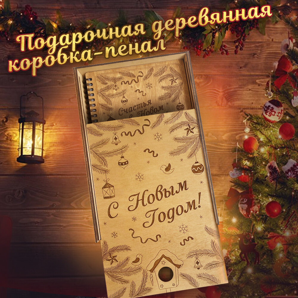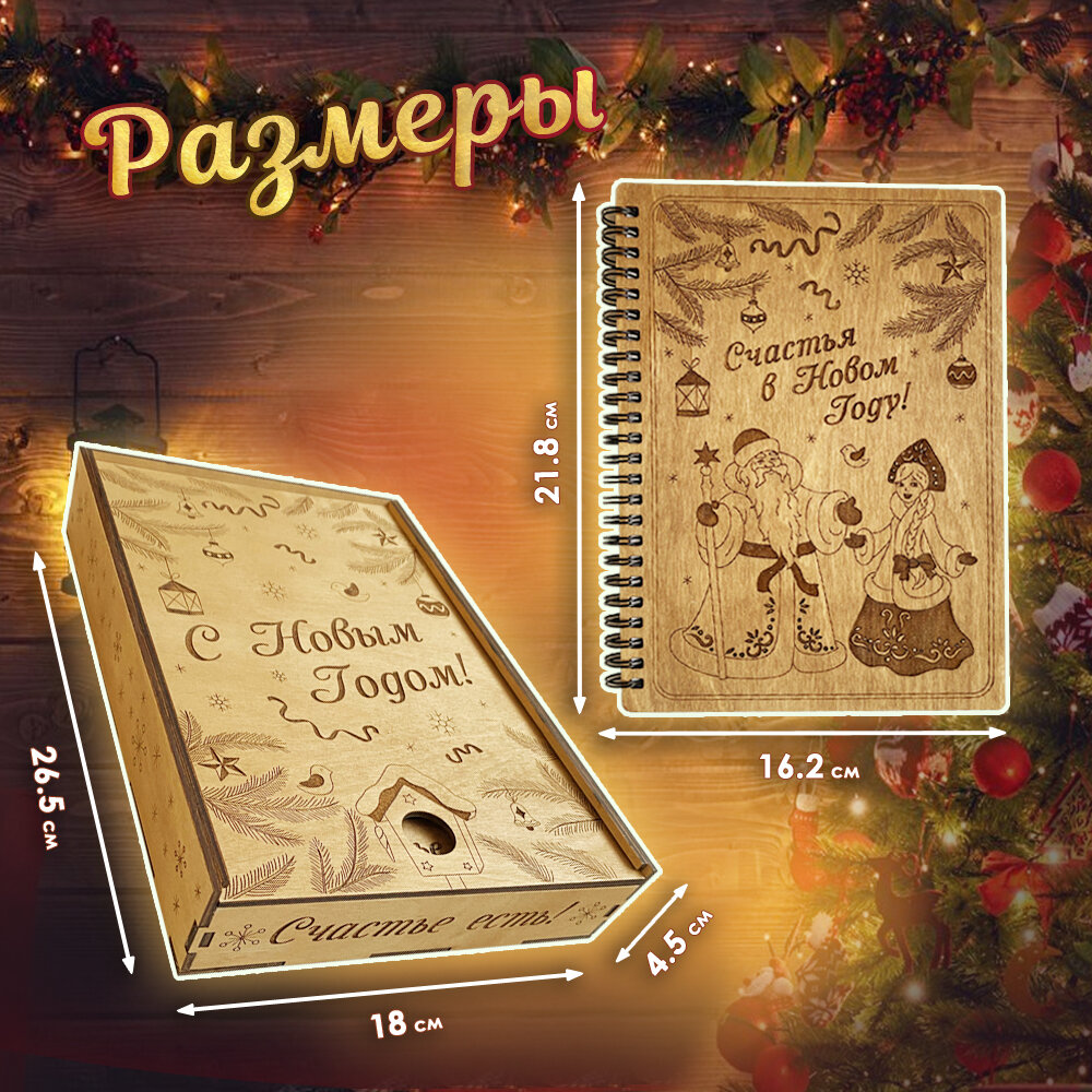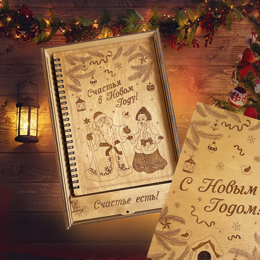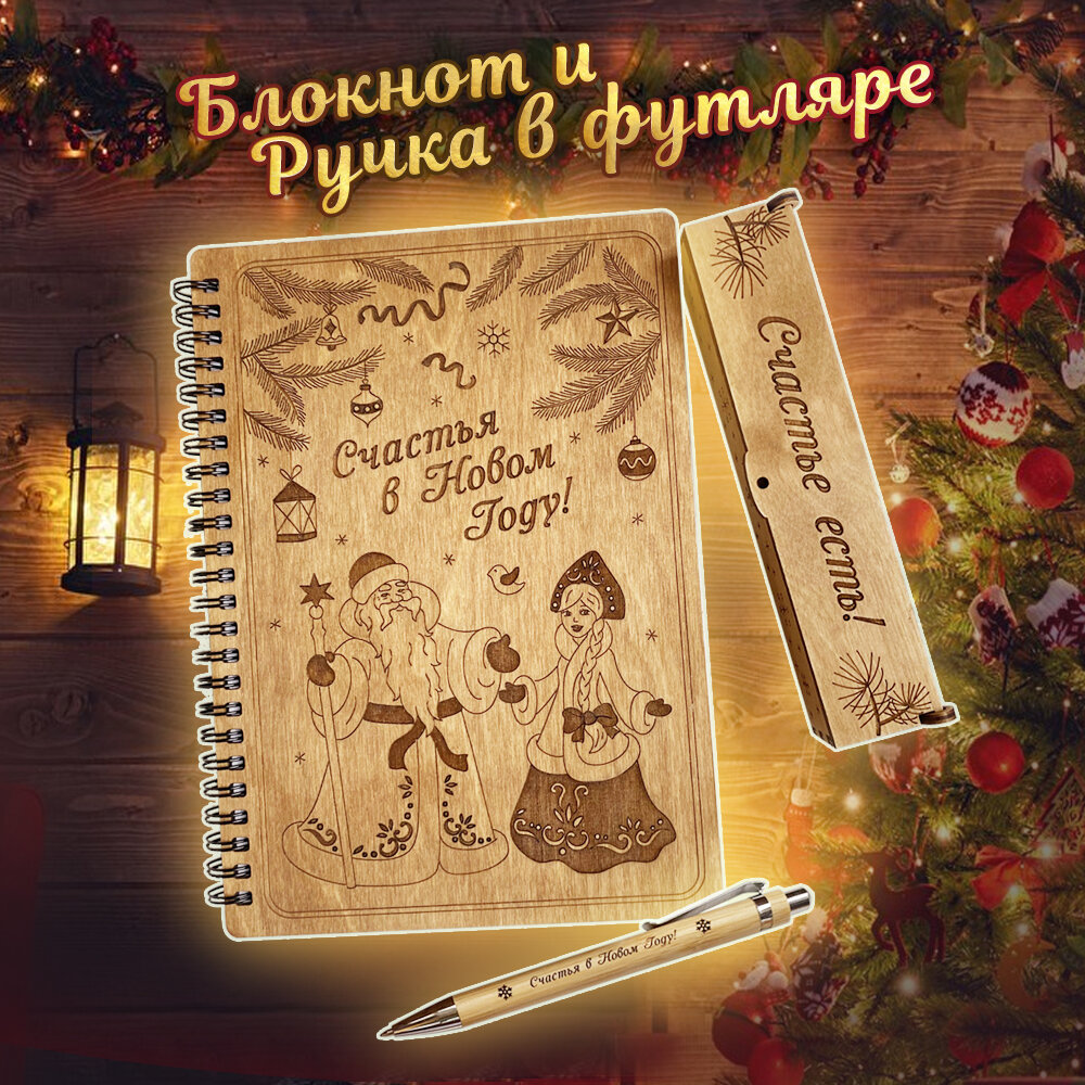 Купить Блокнот с ручкой Woodenking подарочный новогодний А5 для записей в линейку. Недатированная записная книжка "Счастья в новом году!"