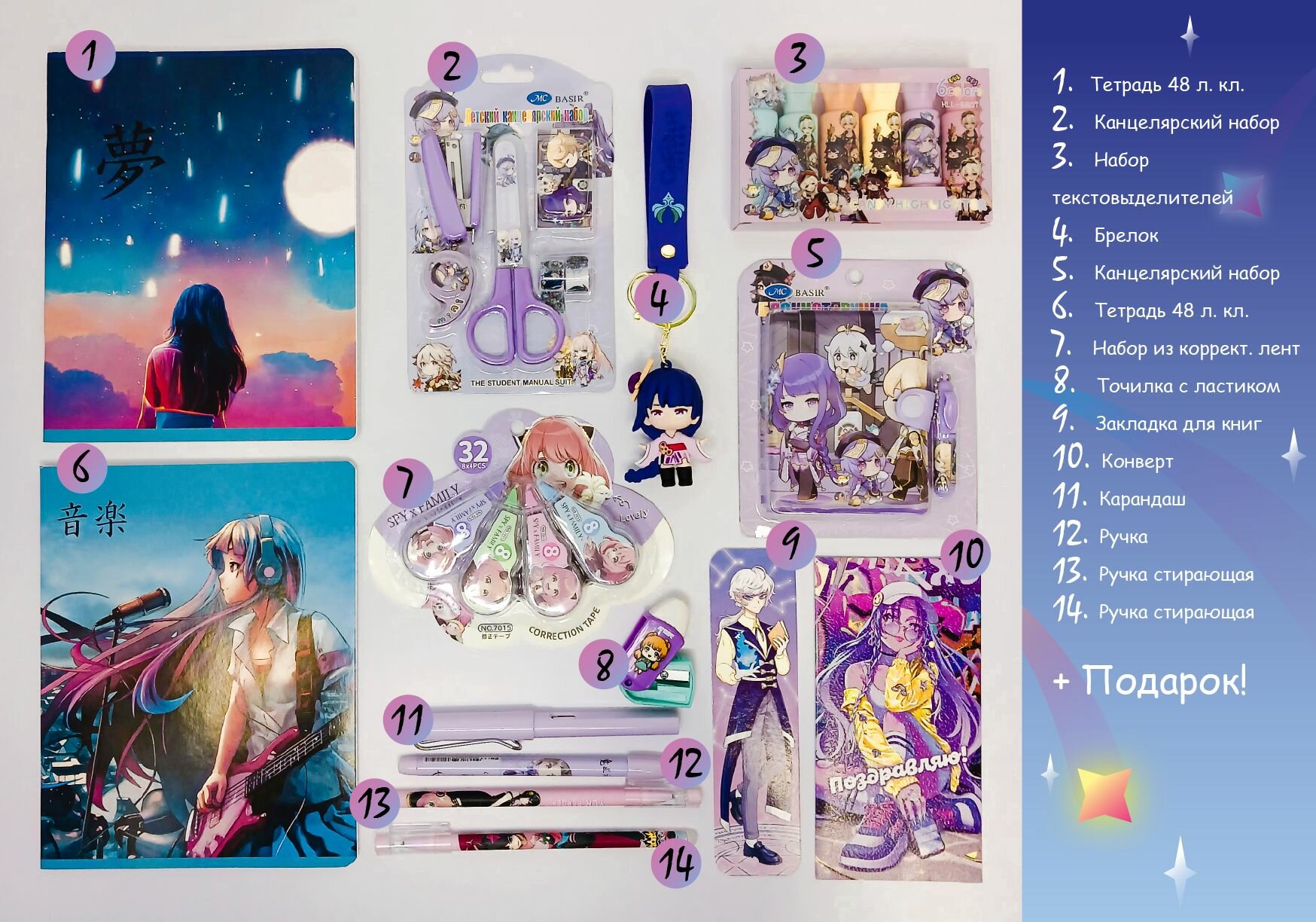 | В комплекте | Блокнот 30 листов - 1шт; Тетради в клетку 12 листов - 2шт; Набор для мыловарения - 1шт; Ручка стираемая - 2шт; Ручка клей - 1шт; Ручка трехцветная - 1шт; Набор ластиков 4-6шт (зависит от комплектации); Ручка масляная - 1шт; Вечный ч\г карандаш - 1шт; Насадка ластик на карандаш - 3шт; Закладка в книгу - 1шт |