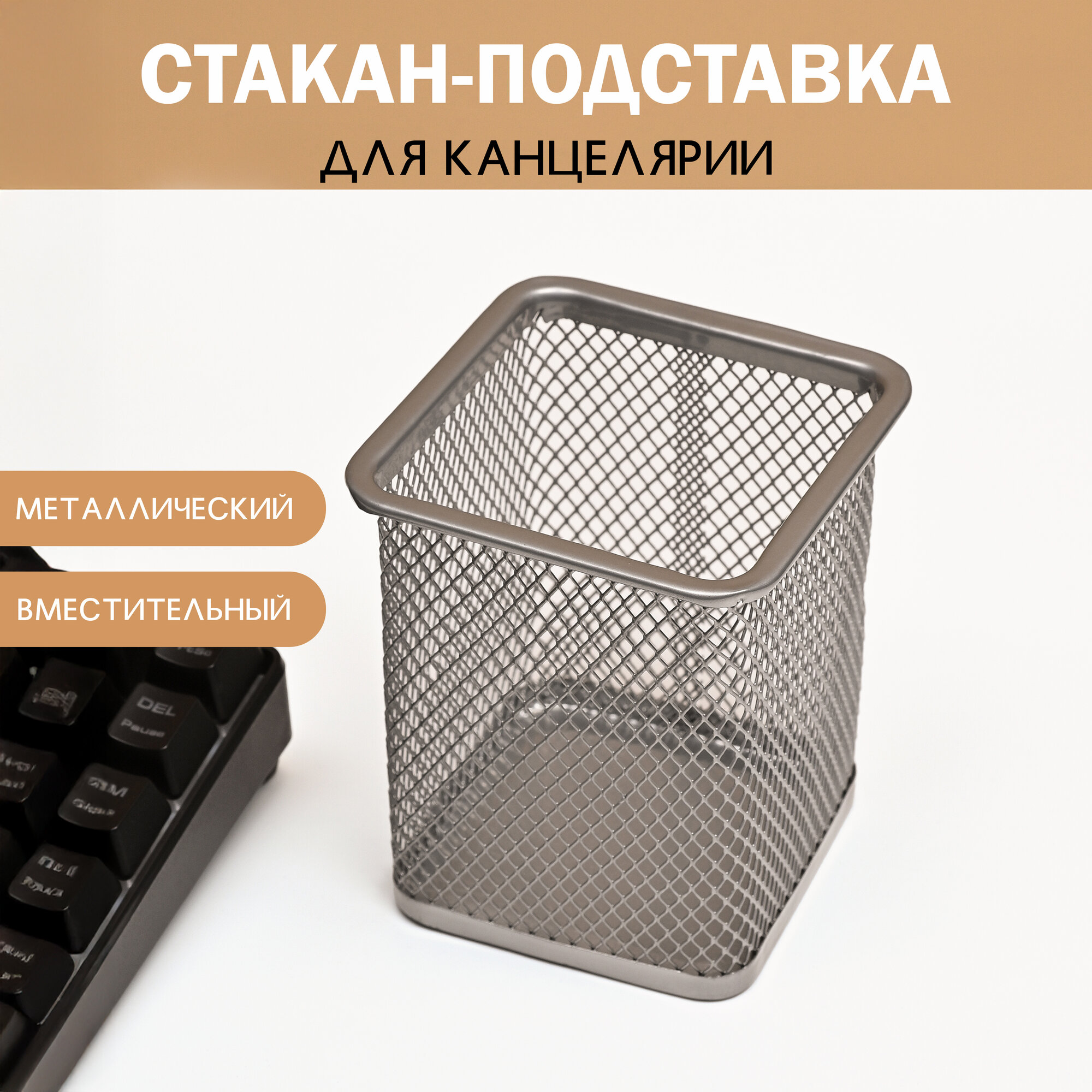 Стакан-подставка, органайзер для канцелярии, настольный , металлический, серебряный интересное: