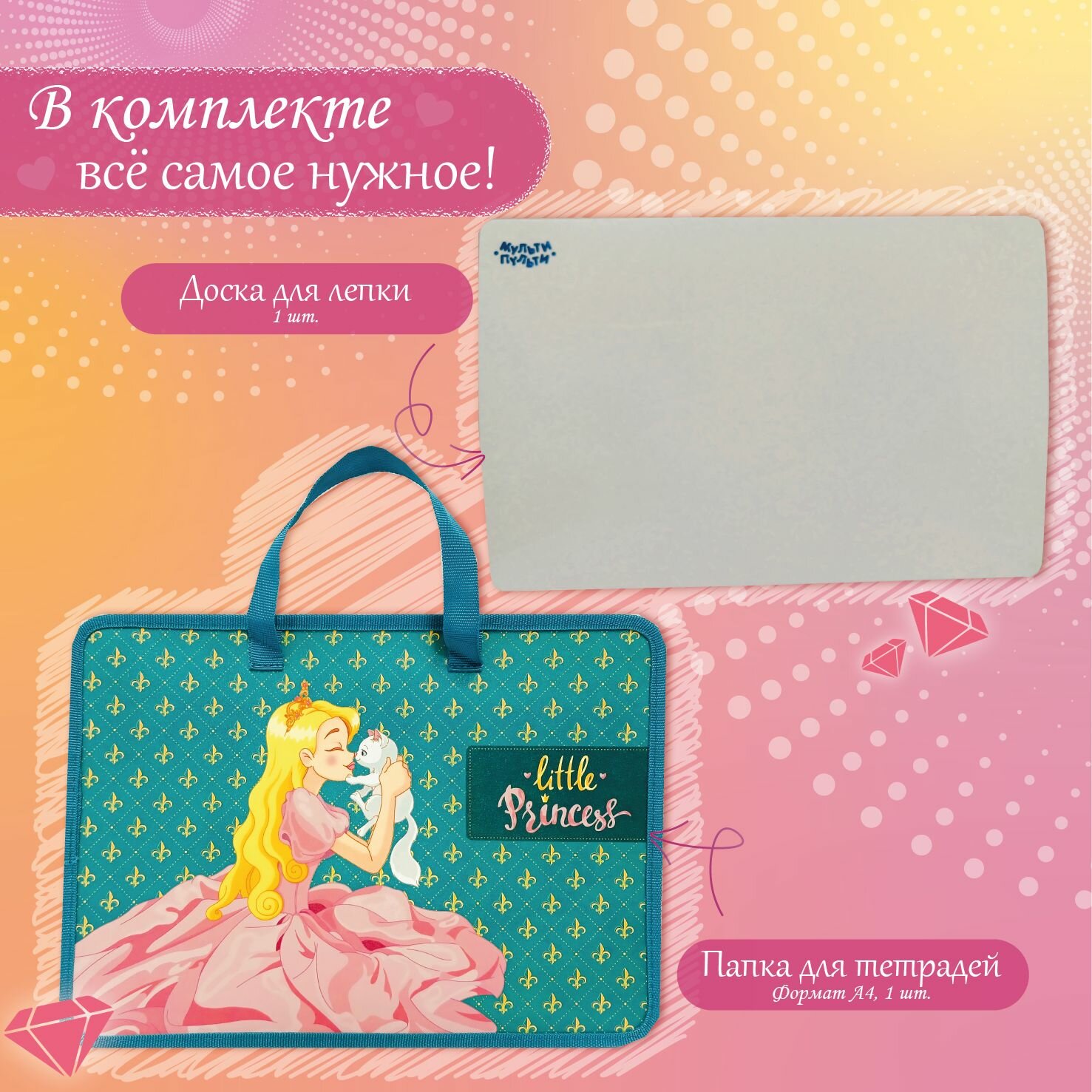 Набор для начальной школы, для девочки 28 предметов "Принцесса" в папке, набор школьных канцелярских принадлежностей интересное: