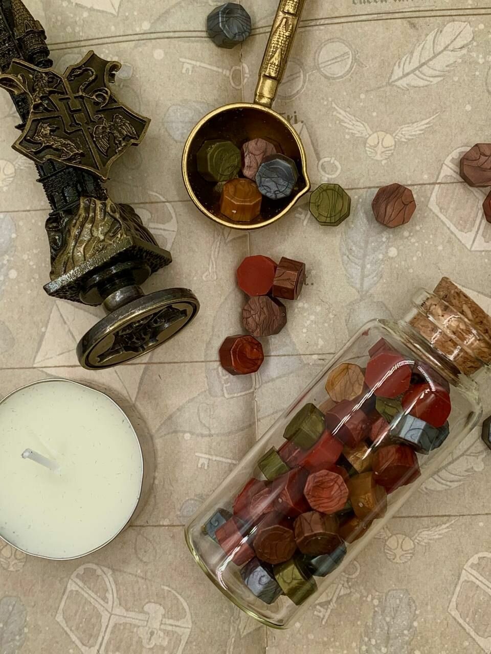 | В комплекте | Блокнот А6, перо для каллиграфии, сменные перьевые наконечники 5 шт., чернильница, закладка в виде пера с шармами, нож для вскрытия конвертов, штамп-печать с замком Хогвартс, сургучный воск для создания печати, свеча, ложка для расплавления воска. |