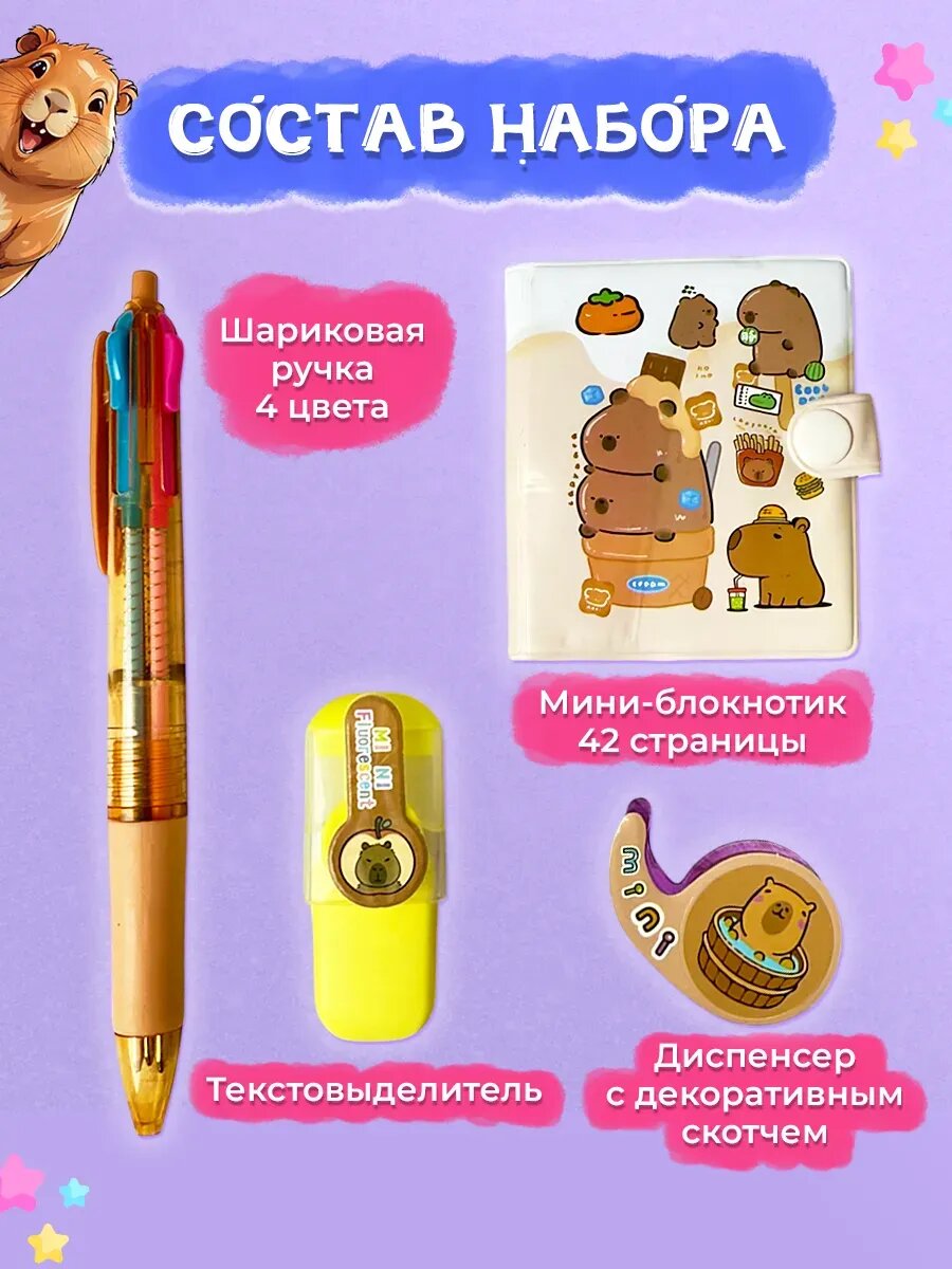 Набор канцелярии с Капибарой подарочный 4 предмета интересное: