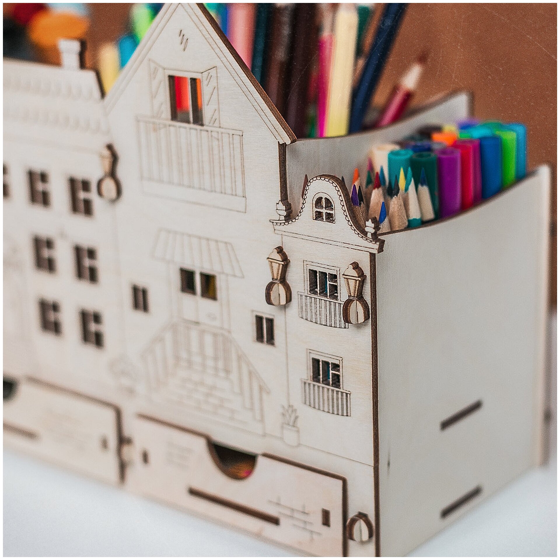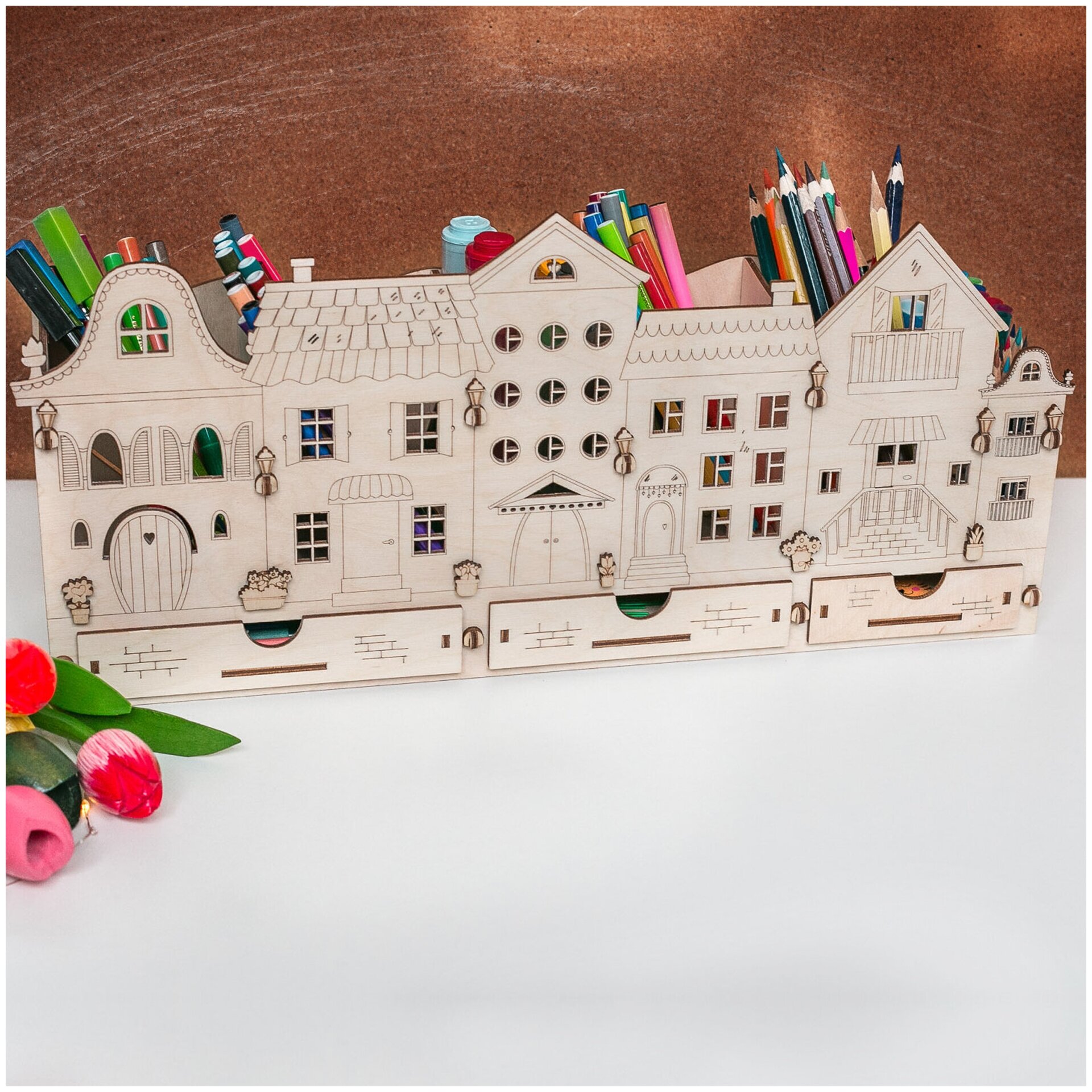 Деревянный органайзер для канцелярии Robokub Сказочные домики интересное: