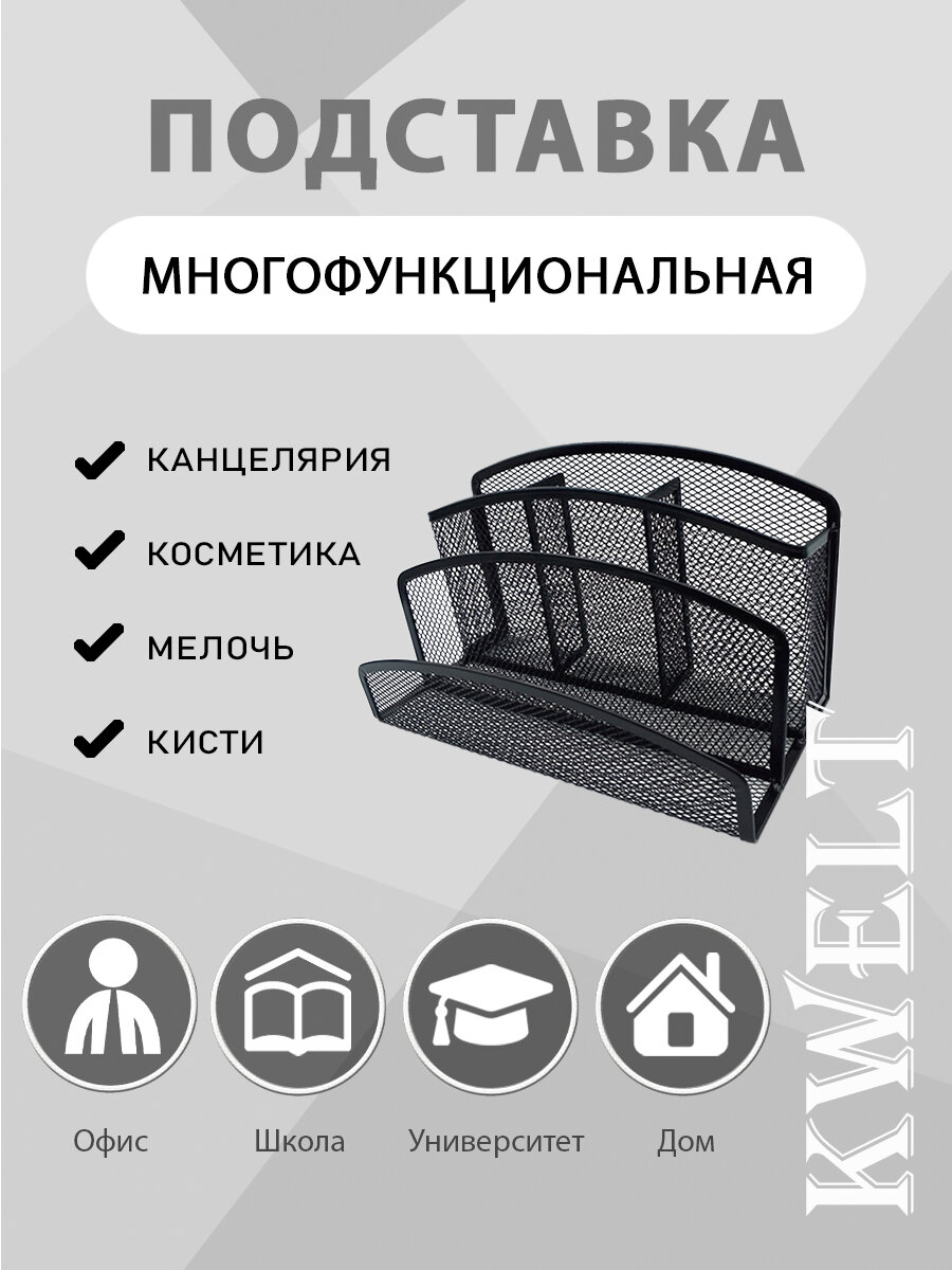 Подставка KWELT 5 отделений, металлическая, сетчатая, 22 х 12 х 12,5 см, черная интересное: