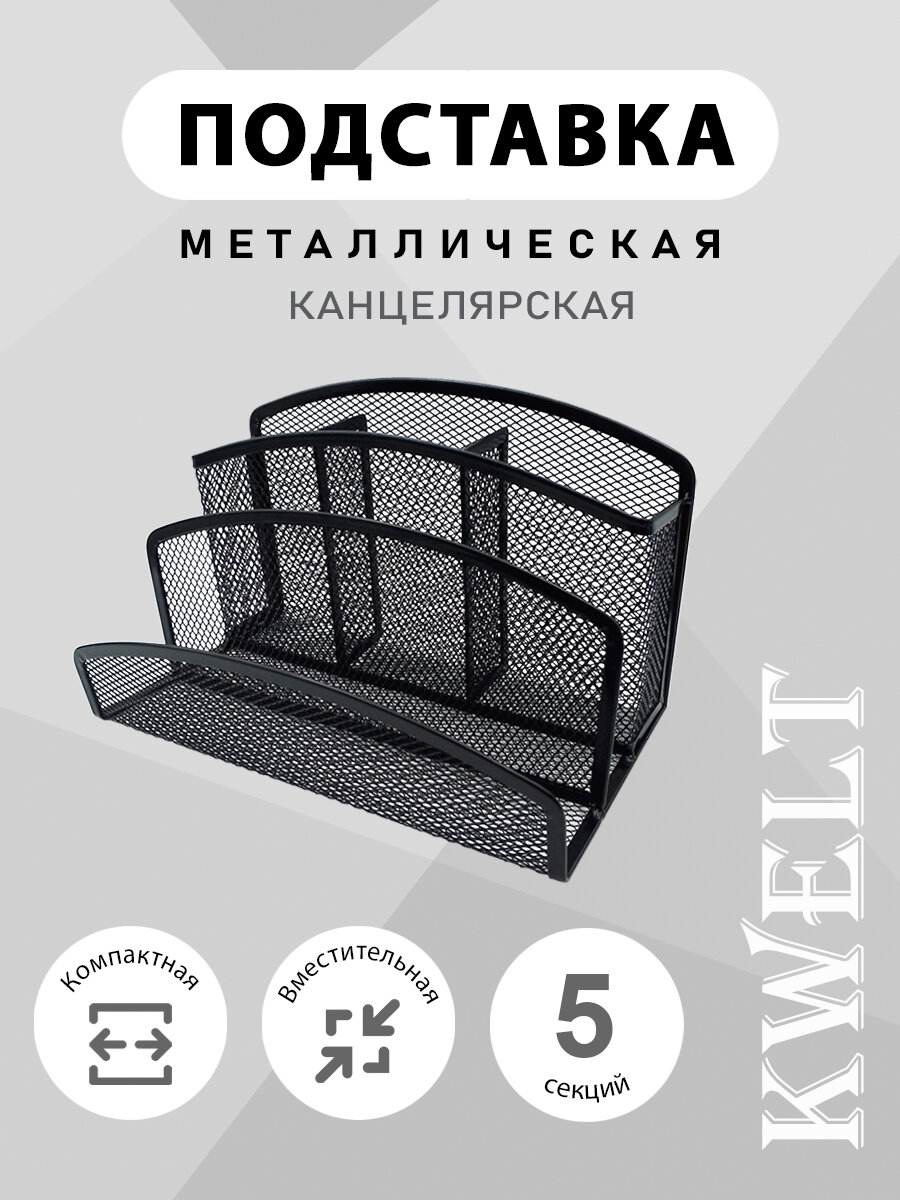 Купить Подставка KWELT 5 отделений, металлическая, сетчатая, 22 х 12 х 12,5 см, черная