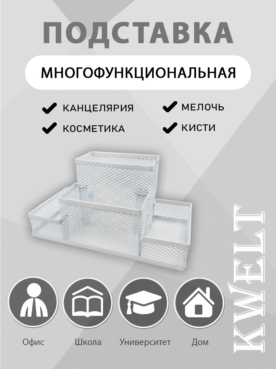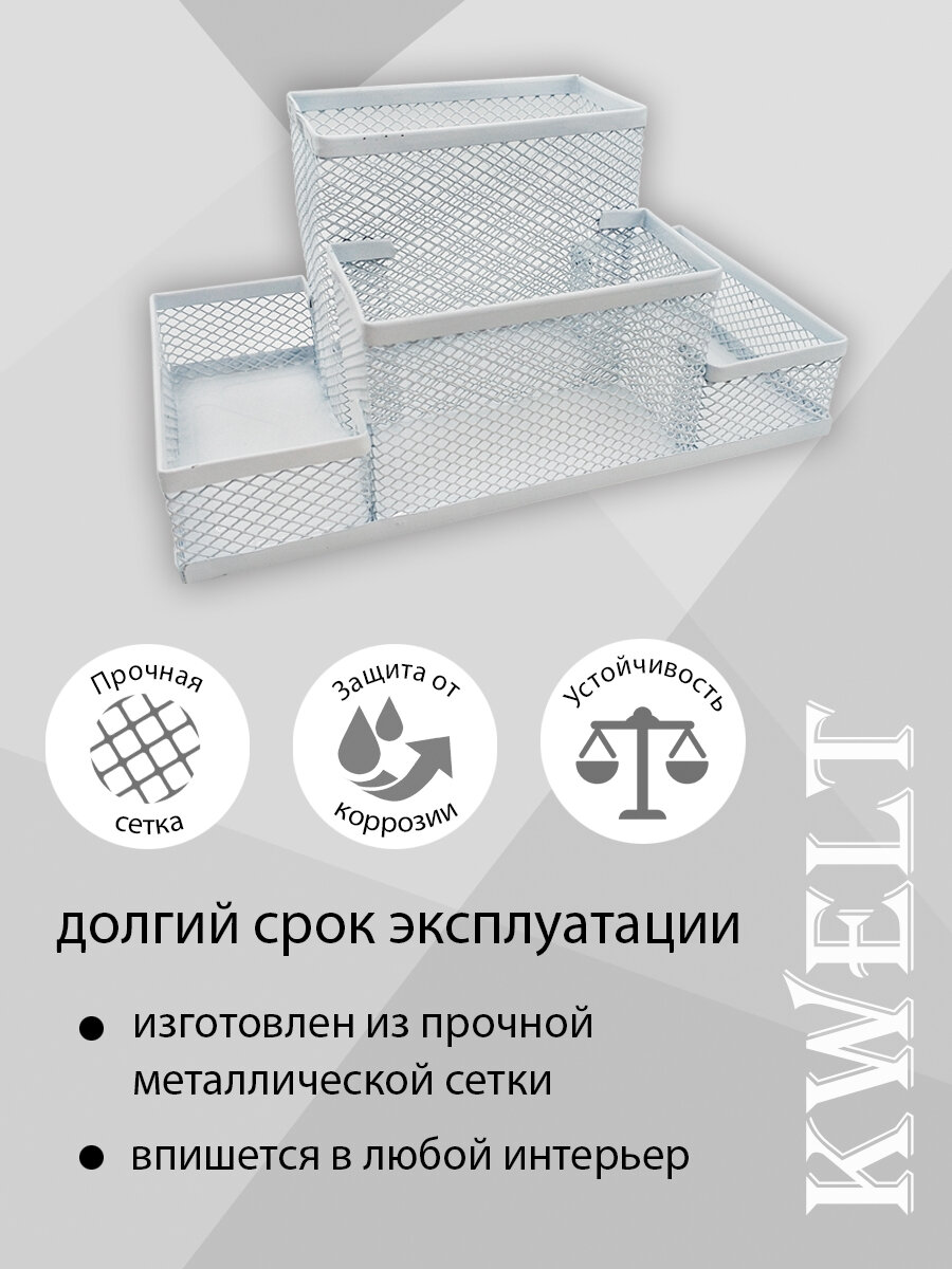 Подставка " KWELT " 4 отделения, металлическая, сетчатая, белая интересное: