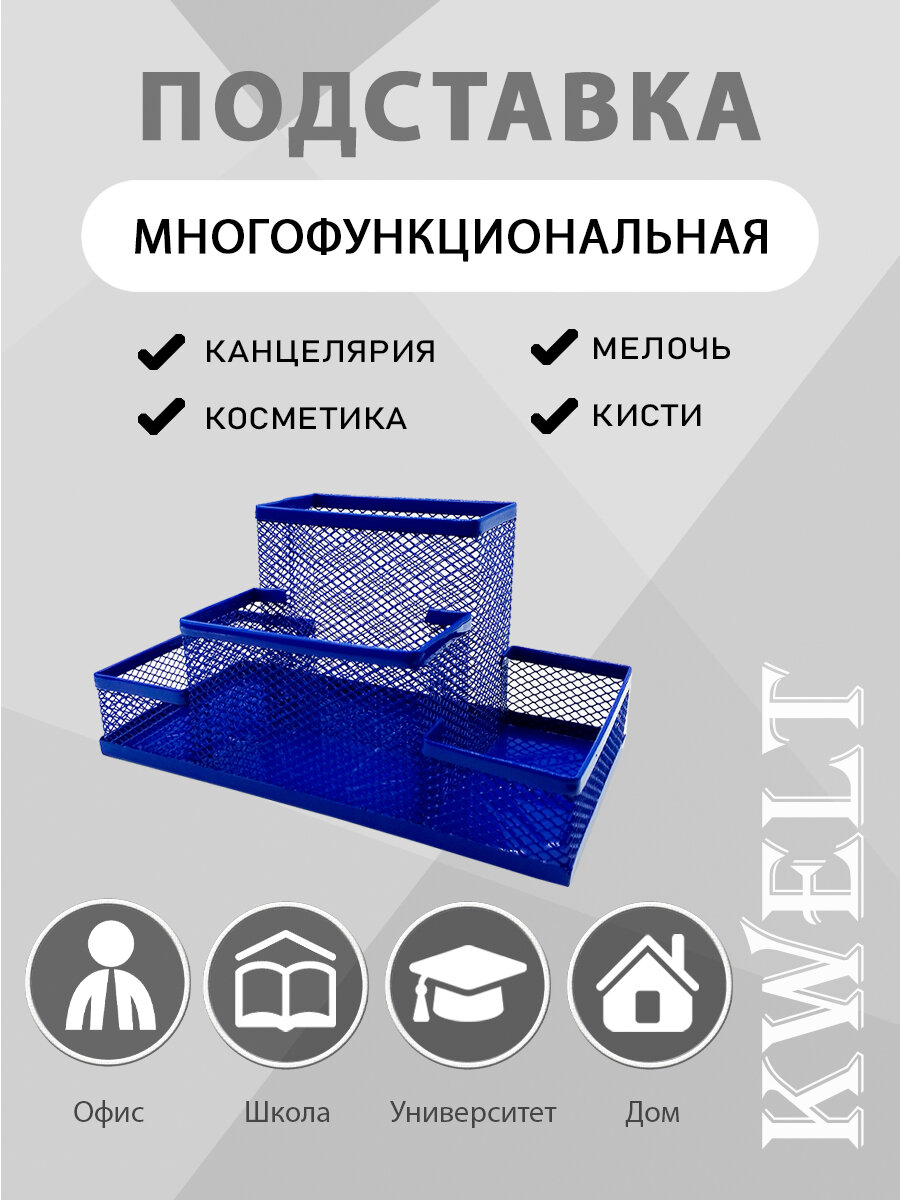 Подставка " KWELT " 4 отделения, металлическая, сетчатая, синяя интересное: