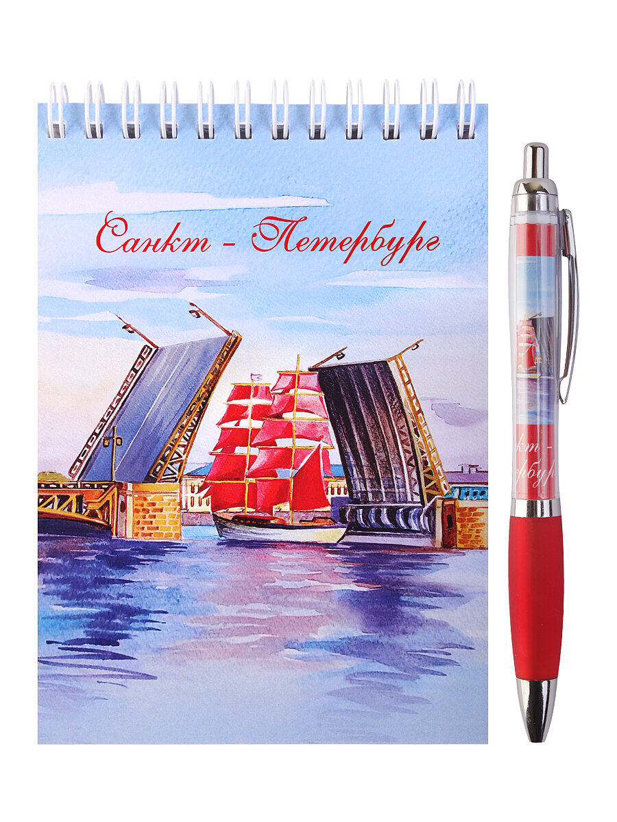 Купить Подарочный сувенирный набор с ручкой и блокнотом "СПб Разводной мост, акварель"