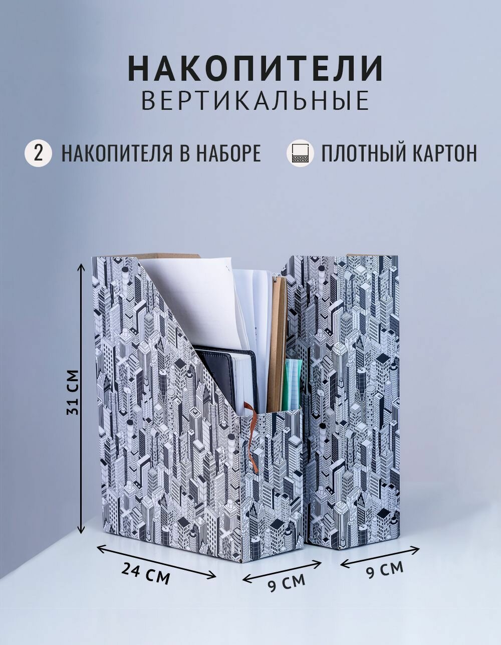 Набор канцелярских принадлежностей (вертикальный накопитель 2 шт, органайзер, подставка) Город интересное: