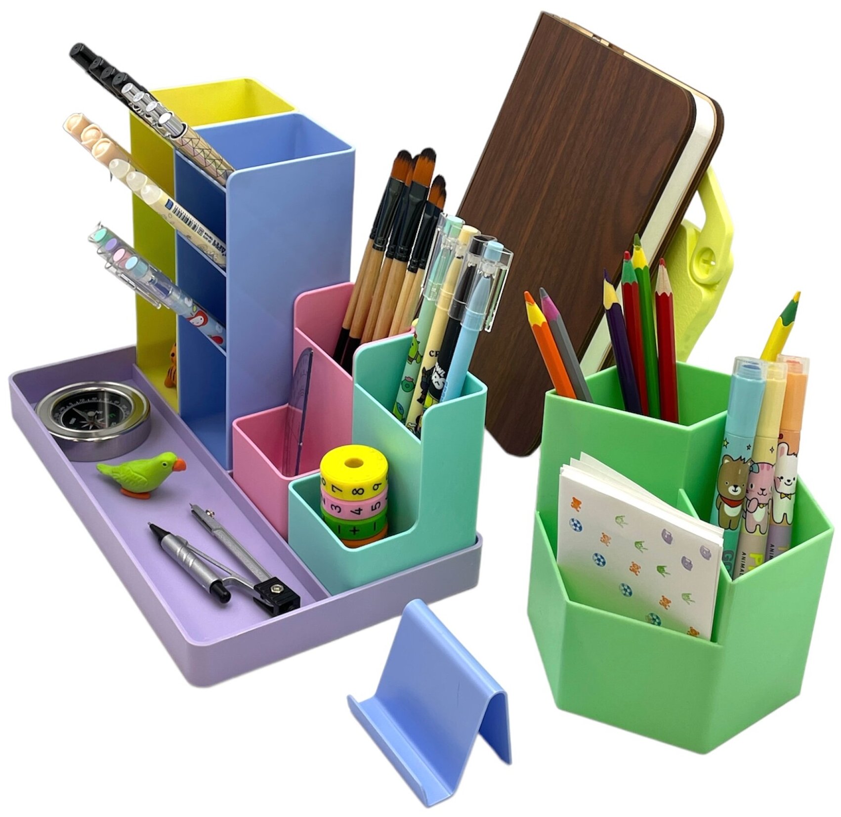 Настольный набор для канцелярии 8 предметов для хранения мелочей карандашей и ручек /Подставка для книг/ Подставка для телефона(визиток)