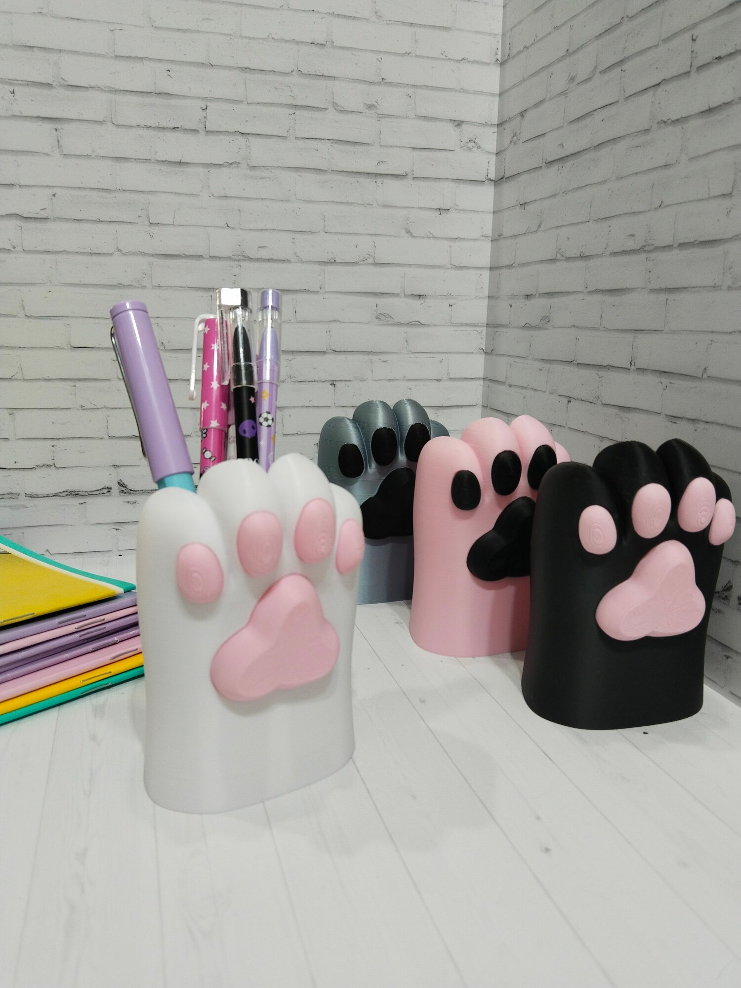 Купить Лапка. Органайзер для канцелярии на стол. Настольный органайзер для девочек и мальчиков. Для взрослых и детей. Белый матовый. 1 шт. 3D печать.