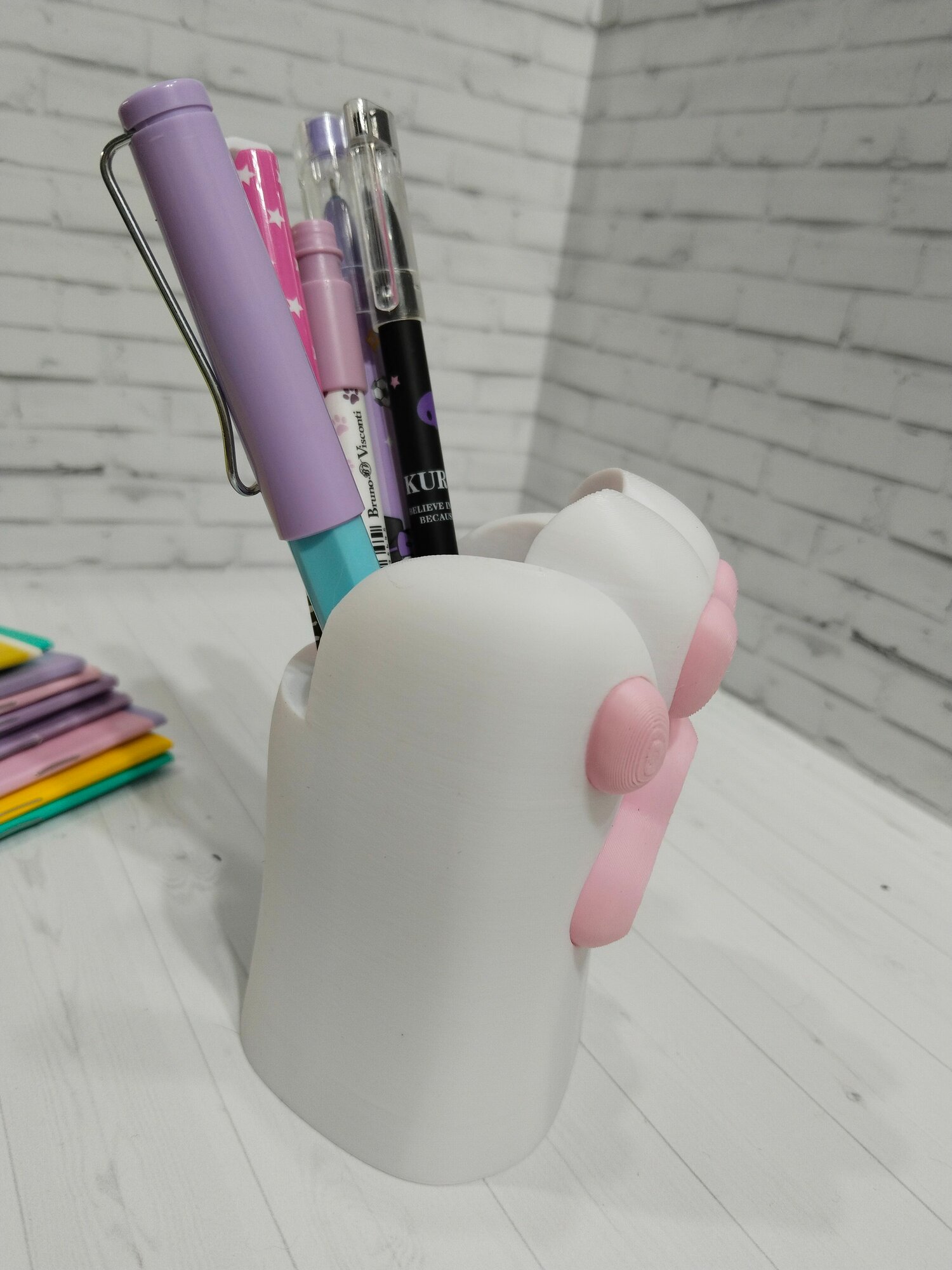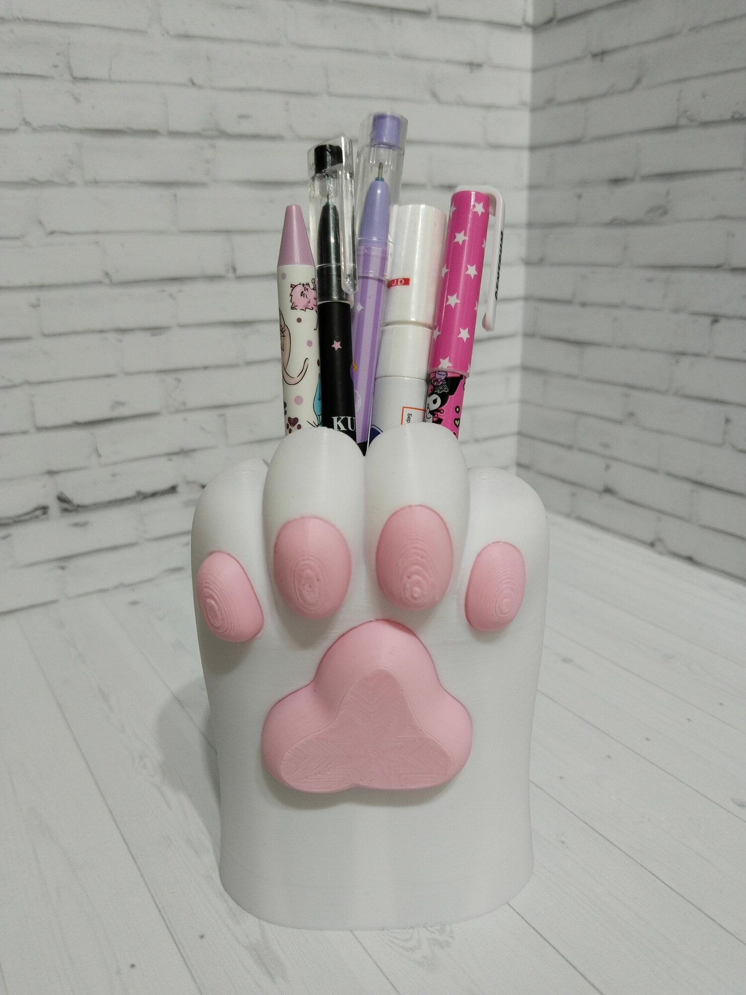Лапка. Органайзер для канцелярии на стол. Настольный органайзер для девочек и мальчиков. Для взрослых и детей. Светло-розовый матовый. 1 шт. 3D печать.